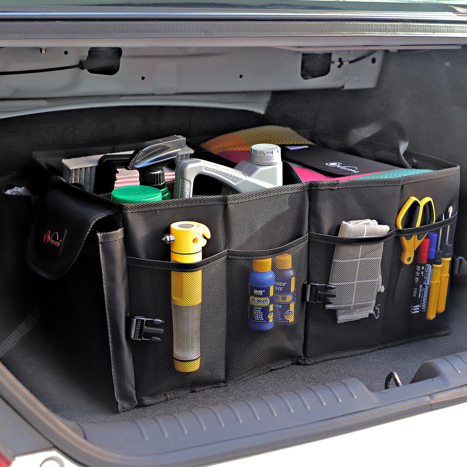 DECLUTTER YOUR CAR: Is your boot that cluttered you can't find what you need? A perfect solution to organize your car tools and equipment, groceries, emergency tools, cleaning supplies, household belongings, camping supplies, etc. keeping them from the mess & rolling around in your trunk rear, backseat or home. Helps prevent breakages of your stored items.