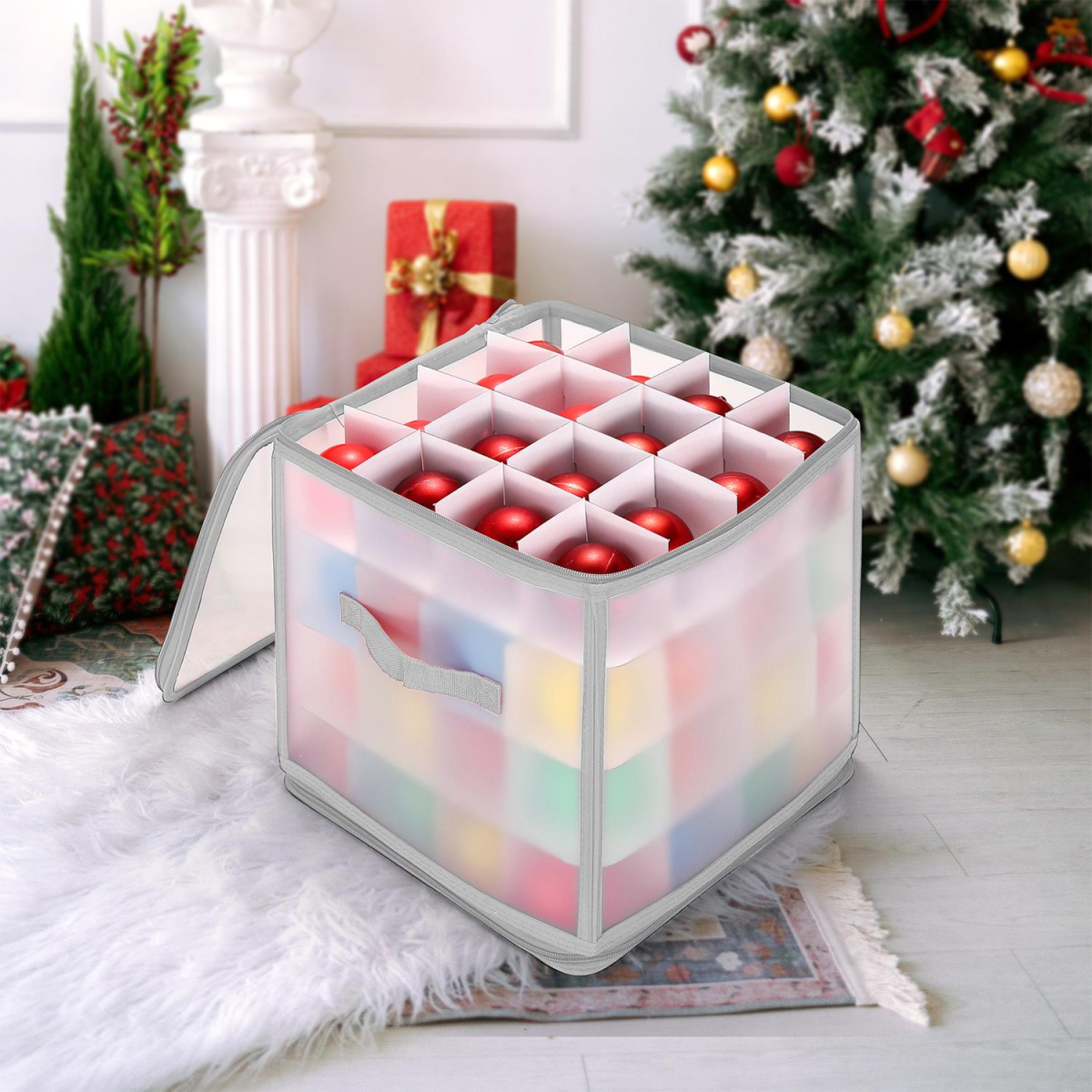 PROTECT & ORGANISE YOUR BAUBLES: Keep up to 64 Christmas ornaments safe, dust-free, and neatly stored in this convenient storage box.