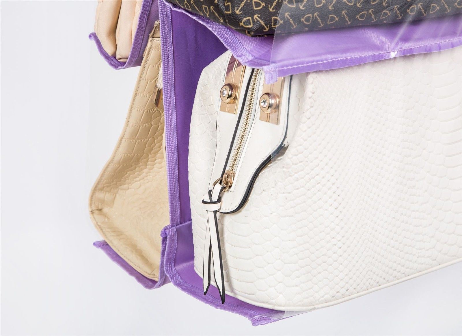 Protects handbags from dust. Helps reduce clutter. Hook hangs from any clothes rail