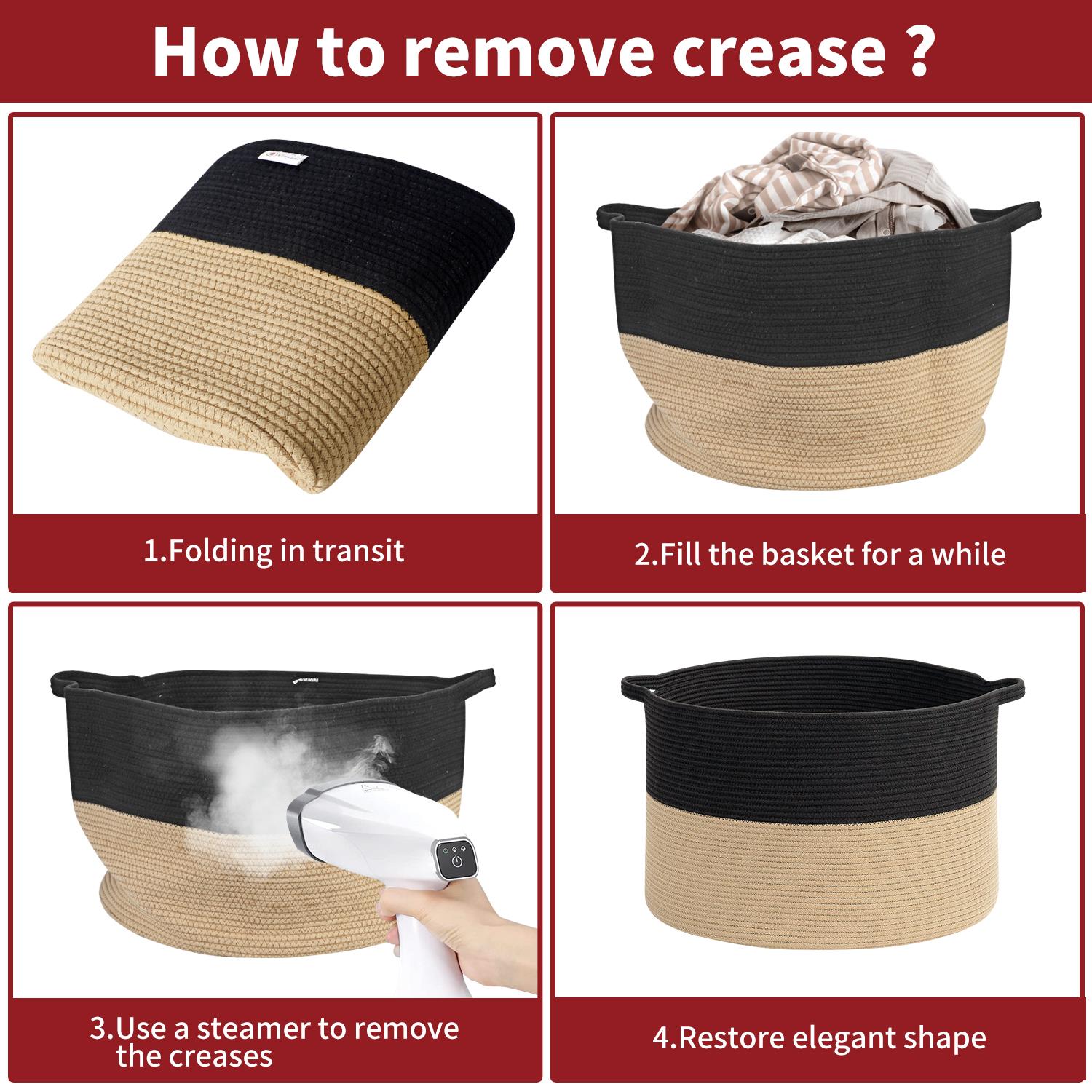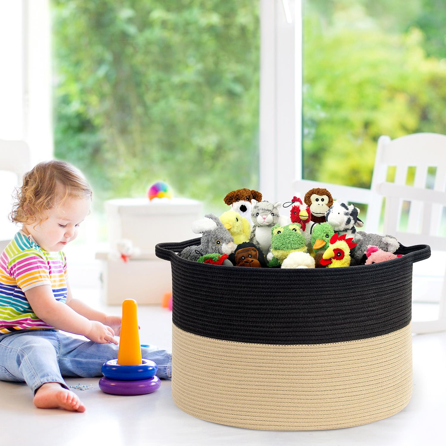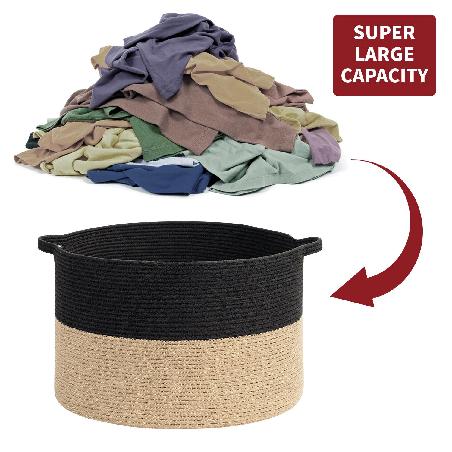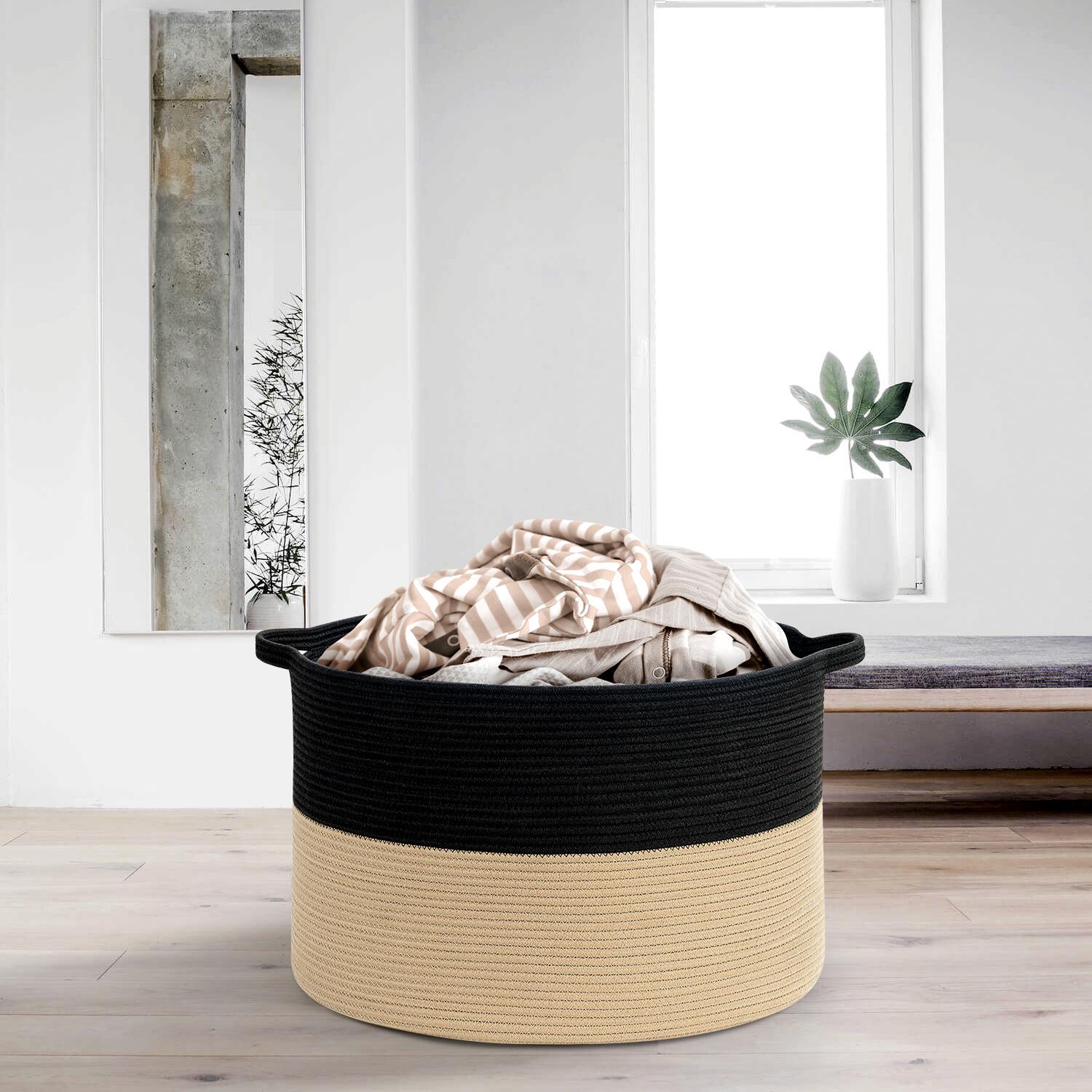 NATURAL HAND-WOVEN BASKET: This hand-woven eco-friendly cotton rope has natural, renewable material that are free of harsh chemicals and harmful additives, making it safe for children and pets. The 56 x 35.5cm (21.6 x 15.7 in) rope basket hamper is best suited for dealing with overflowing garments and toy piles. A fine collection of rope storage baskets to keep your home looking nice and your stuff tucked away!