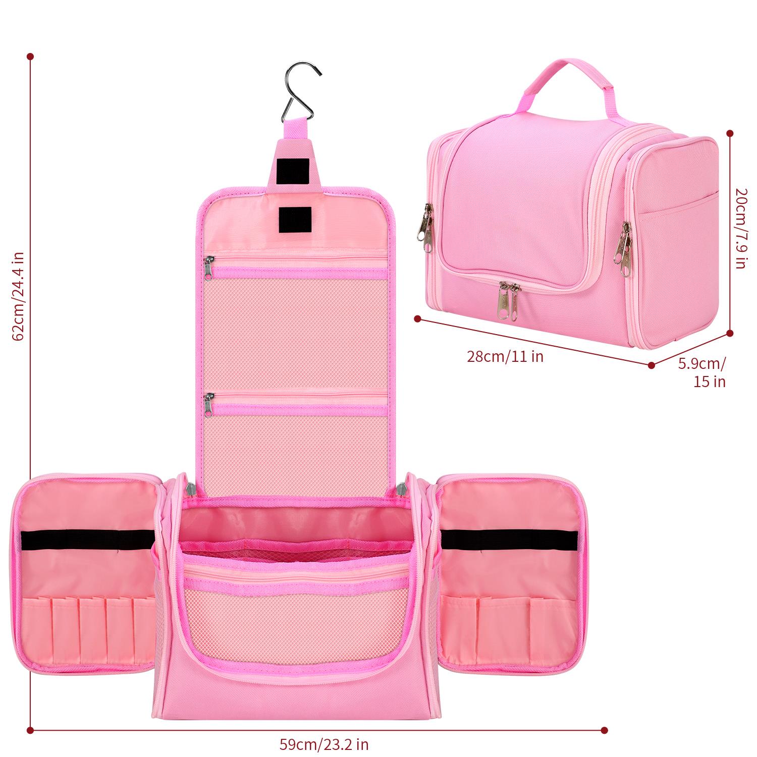 CONVENIENT DESIGN: With a reinforced double-stitched handle, two zippers, and a hook that works fantastically on your bathroom or other places, this toiletry bag offers the most practical design and plenty of space for your essentials. All of your essential toiletries can be neatly stored in multiple compartments with functional mesh pockets and elastic loops without taking up a lot of room in your luggage.