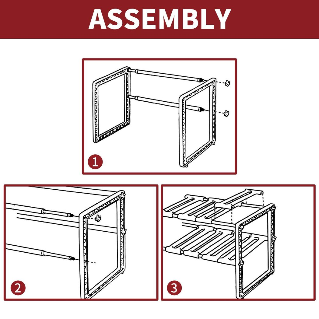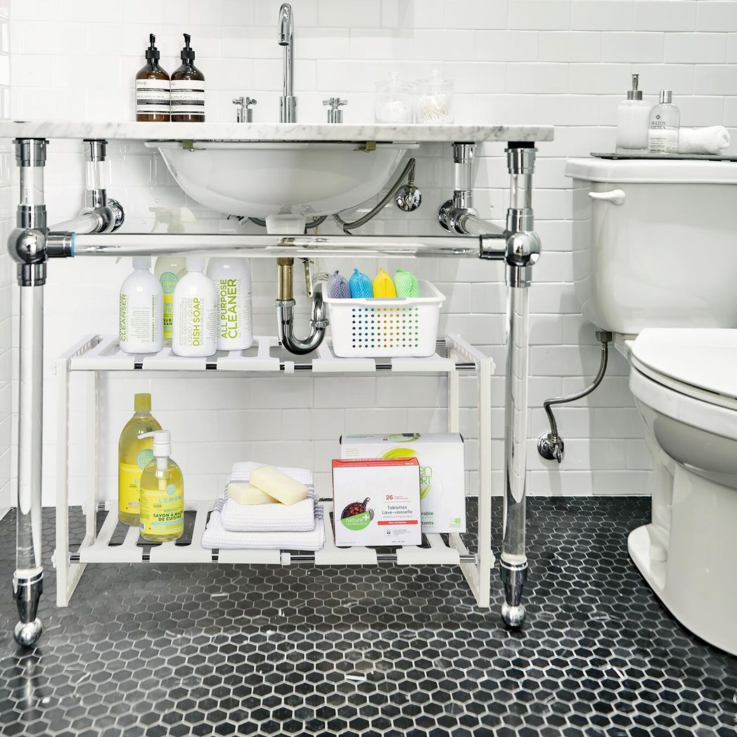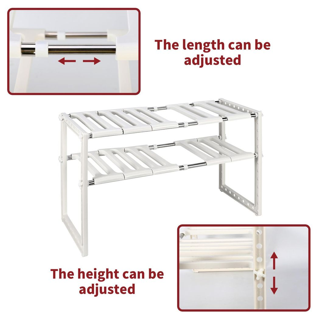 FEATURES - An expandable design and a waterproof construction, this storage organiser is ideal for keeping a kitchen or bathroom cabinet tidy. This undersink organizer storage sink rack can be arranged to fit around any undersink pipe configuration adding desirable shelf space.