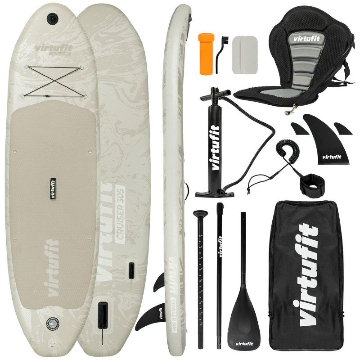 VIRTUFIT SUP BOARD CRUISER 305 - SAND BEIGE - WITH KAYAK SEAT, ACCESSORIES AND STRETCHER BAG