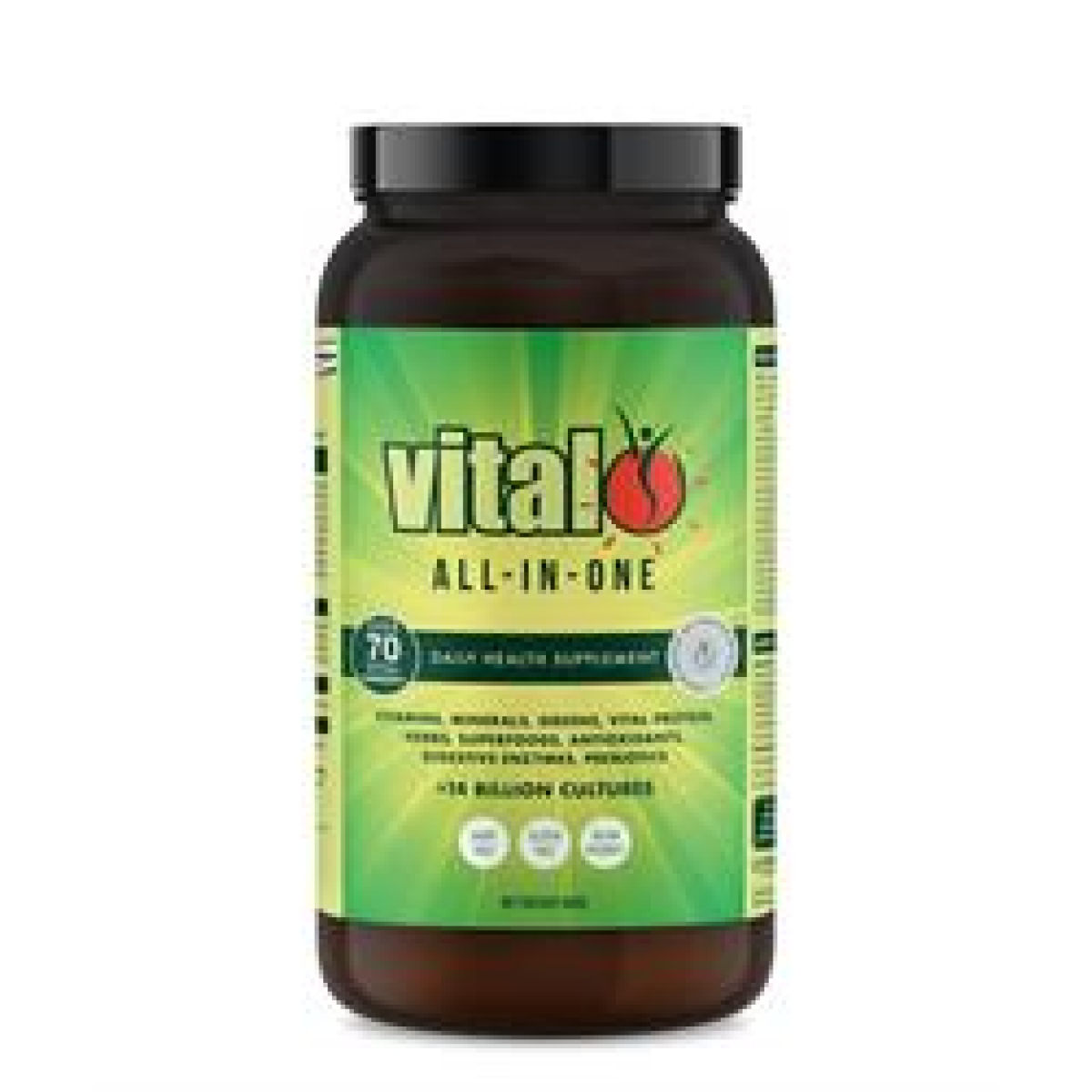 Formerly called Vital Greens, Vital All in One is a unique formula containing a synergistic blend of nutrient-dense ingredients - vegetables, fruits and berries, herbs, vitamins and minerals, phytonutrients, cultures, prebiotics, enzymes, essential amino acids and fibre, and now with 14 Billion Probiotics per serving.
