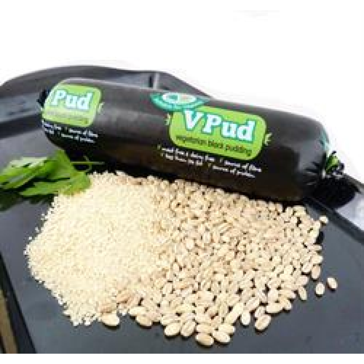 World 1st and best Vegan Black Pudding. Vegetarian society 'vegan' approved and winners of their coveted best breakfast product award. Made using only the best quality natural ingredients and RSPO approved oil.