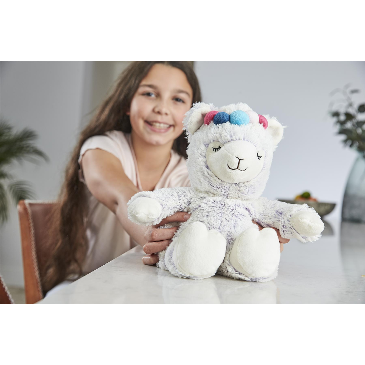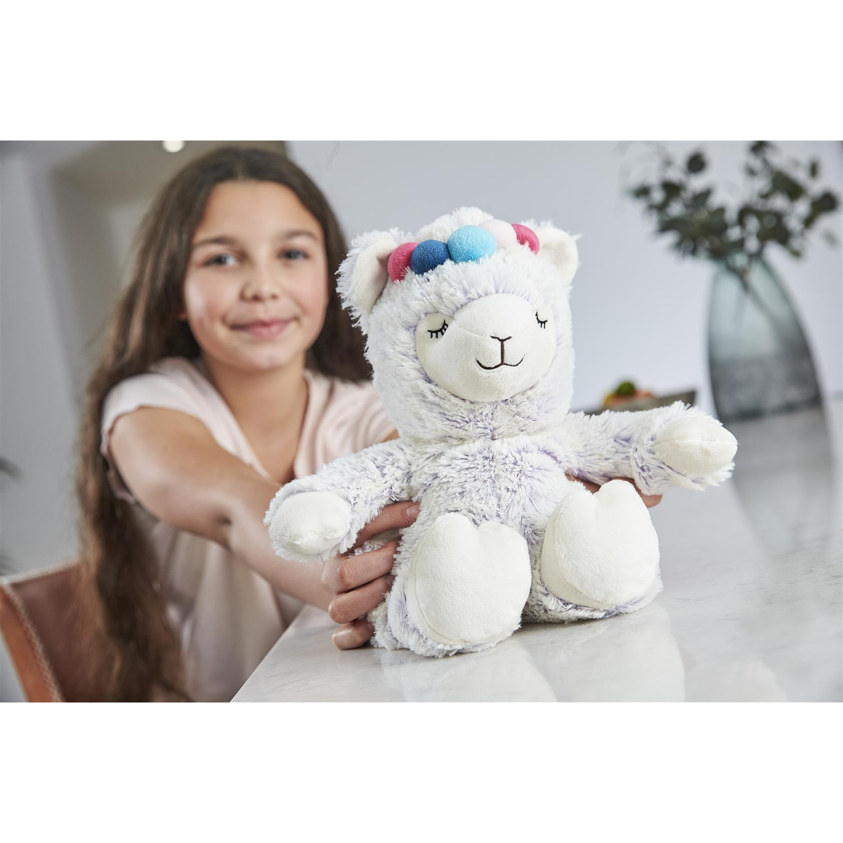 Warmies Marshmellow Llama is a fully heatable soft toy that can be heated in a microwave to provide hours of soothing warmth and comfort. These luxuriously soft plush designs are gently scented with relaxing lavender and can be reheated time and time again. Warmies are weighted, warming, scented and super cuddly. Simply warm for 60 seconds in a 850-1000W microwave or up to 90 seconds in a 600-800W microwave. Soothes, Warms and Comforts. Scented with French Lavender. Chill in a Freezer for Cooling Relief. Suitable for all ages. Surface clean regularly with a lightly damp cloth, allow to dry at room temperature. DO NOT IMMERSE IN WATER.