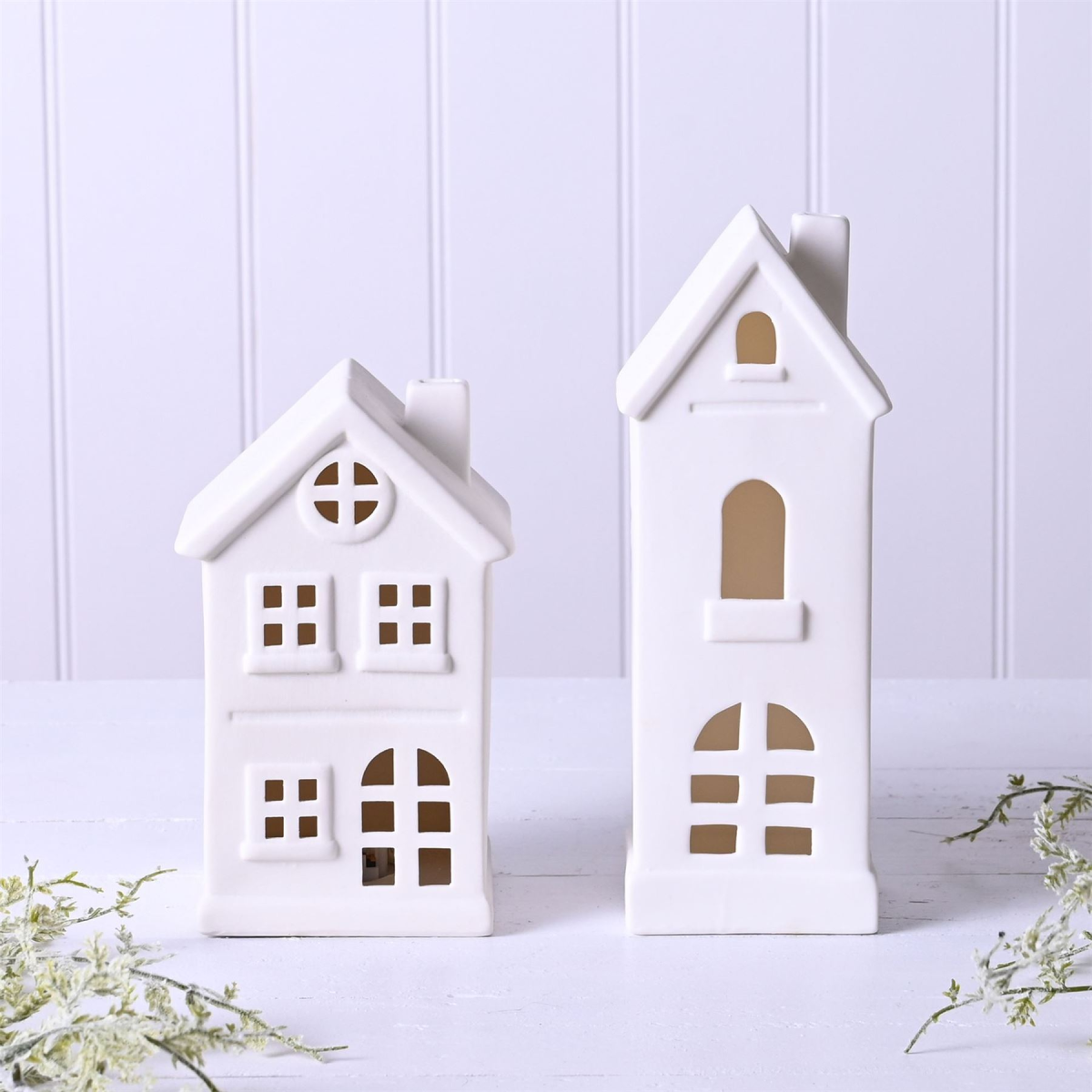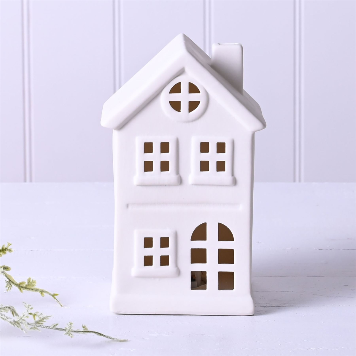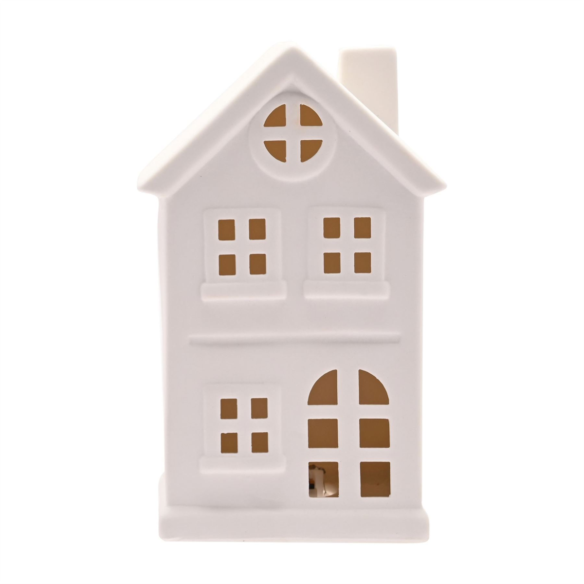 A white ceramic LED house ornament by THE SEASONAL GIFT CO�.