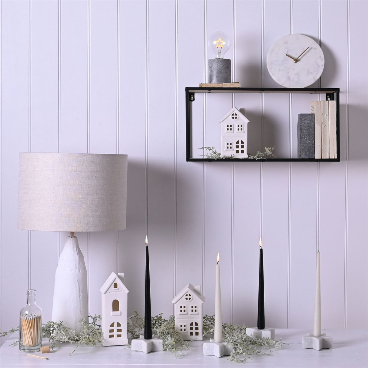 The matt white ceramic ornament showcases a striking house design, complete with cut-out door and windows. Its LED light creates an ambient mood when displayed at home.