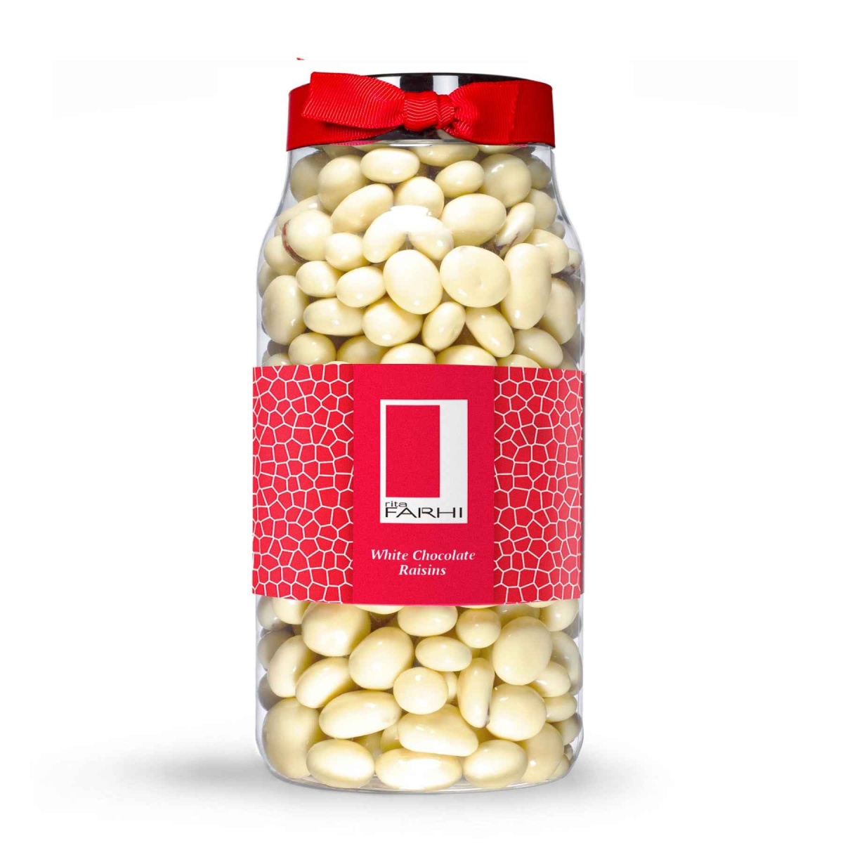 WHITE CHOCOLATE COVERED RAISINS: White Chocolate (70%) (Sugar, Cocoa Mass, Cocoa Butter, Whole Milk Powder, Emulsifier: Soya Lecithin, Natural Vanilla Flavouring), Jumbo Raisins (30%), Glazing Agent: Gum Arabic; Corn (Maize) Protein.