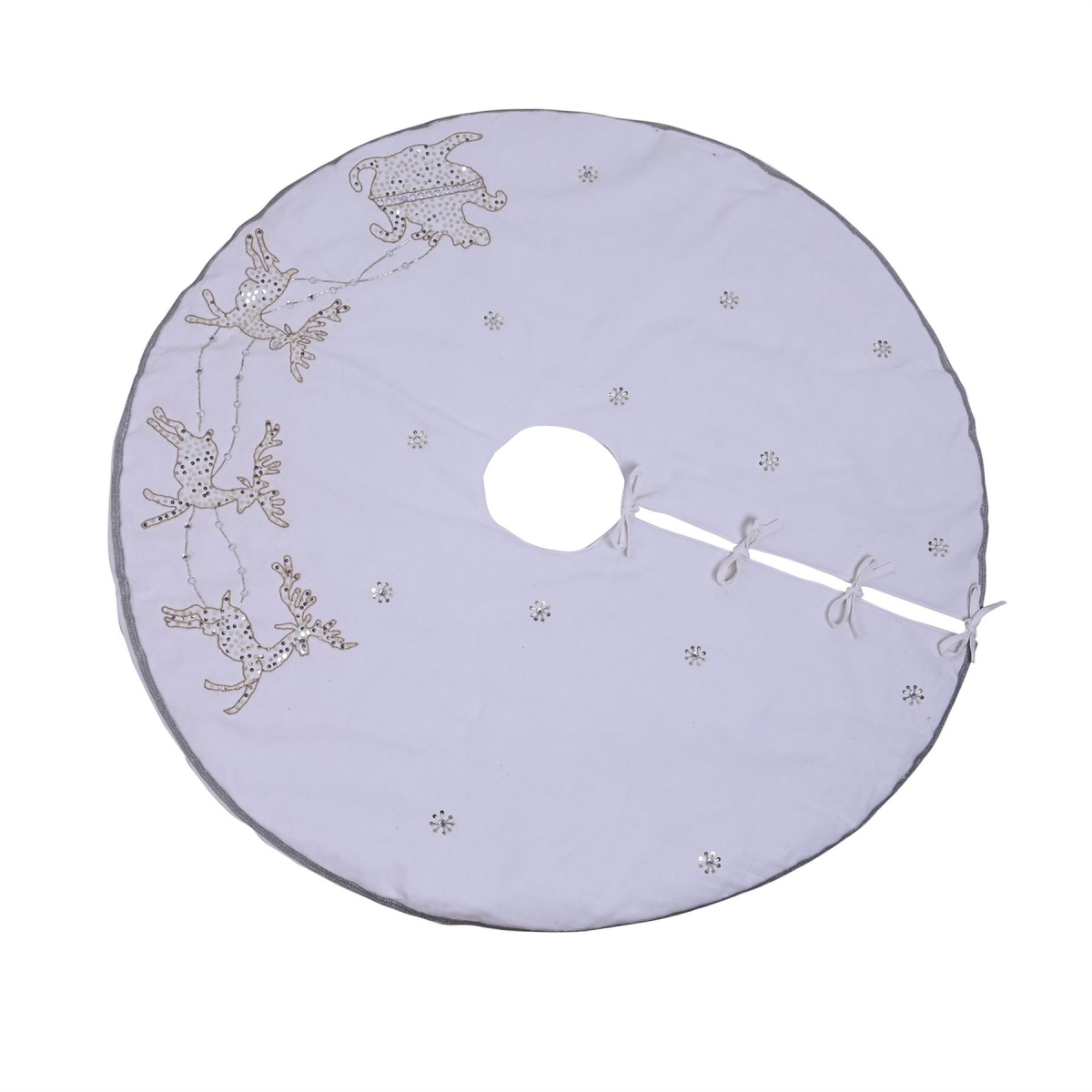 A white reindeer hand embellished Christmas tree skirt from THE SEASONAL GIFT CO�.