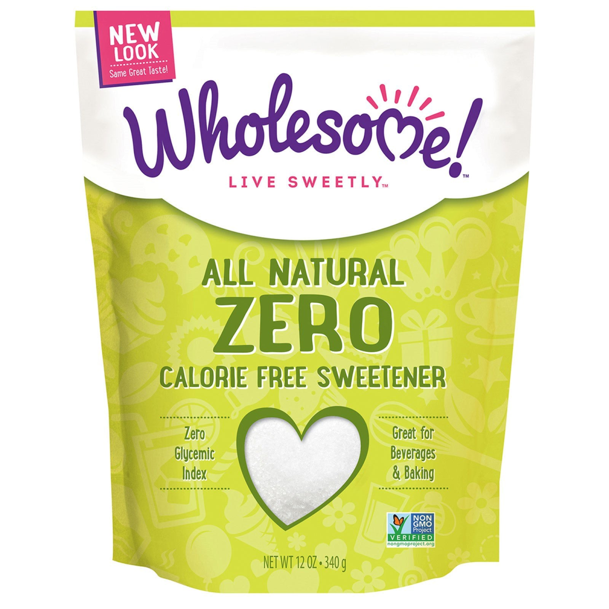 Same Great Taste! Live Sweetly Zero Glycemic Index Great for Beverages & Baking Non GMO Project Verified Care For You. Care For Our Planet Gluten Free Naturally Vegan Kosher Certified Life is Sweeter when it's wholesome! Love, kindness and joy may not appear on our ingredient label, but they're in this package just the same. Each time you choose Wholesome! products, someone's life gets a little sweeter. We pour our whole heart into all we do. We are committed to Non-GMO food and stay on the cutting edge of eco-friendly agriculture to ensure the smallest footprint possible. All Natural Zero Zero is produced from all natural erythritol, a naturally occurring sugar found in our bodies, fruits and fermented foods. It has a clean sweetness, is tooth-friendly, and is an ideal replacement for artificial sweeteners. Zero is perfect in beverages or desserts where you prefer a delightfully mild rather than intense sweetness. 1 1/3 Cups Zero = 1 Cup Refined Sugar