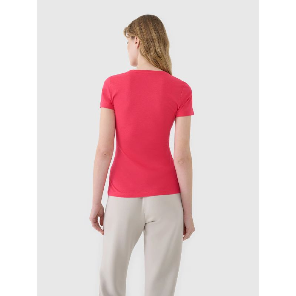 The 4F women's T-shirt is a classic that works well with both everyday and sporty outfits. Its lightweight and comfortable design makes it an ideal choice for warm days, but it also works well as a base layer under other clothes on cooler days.