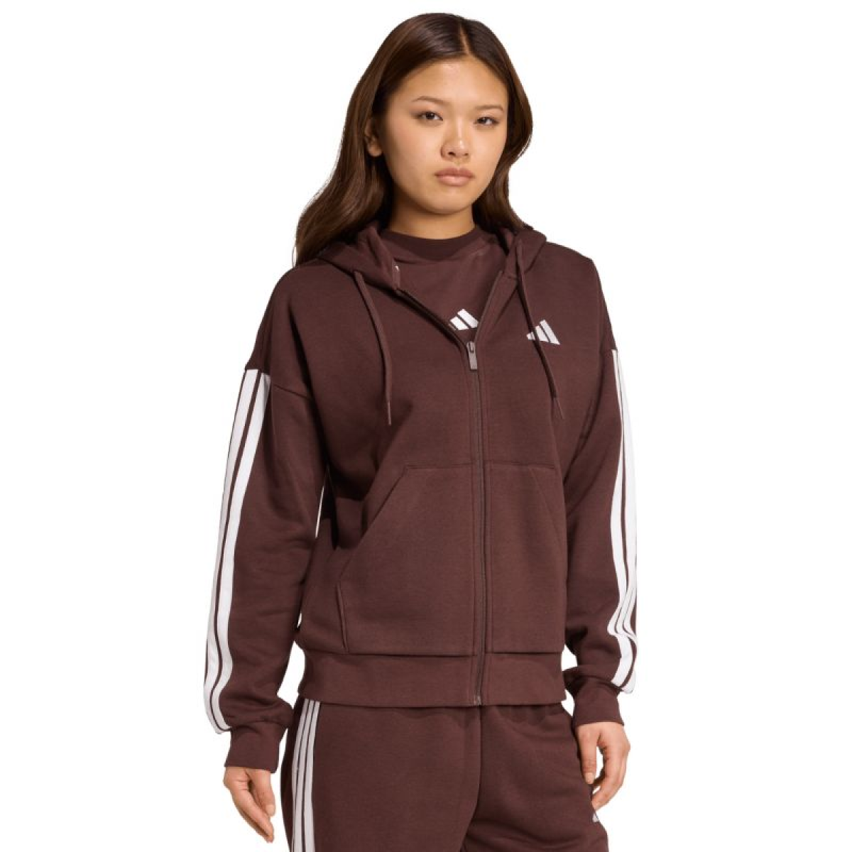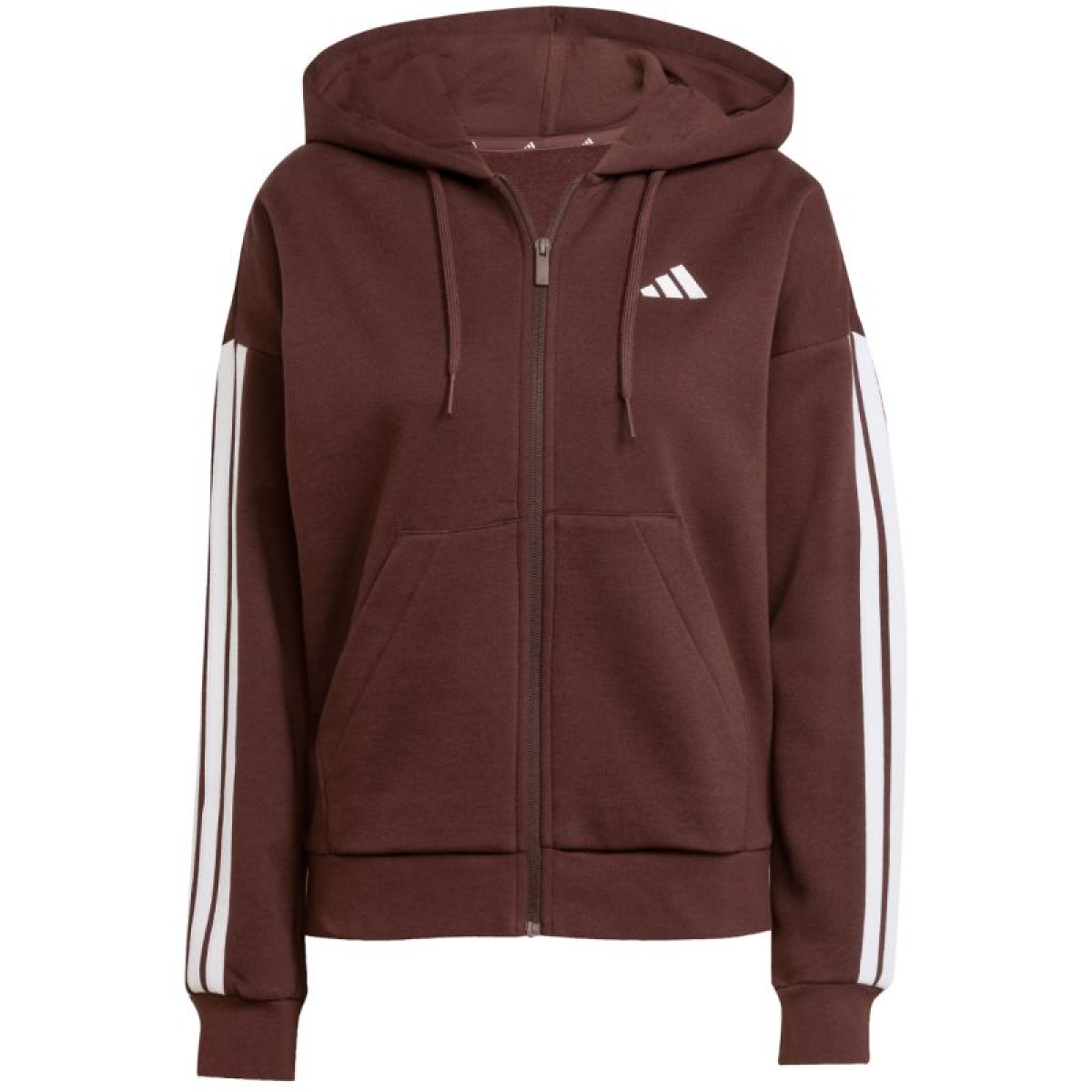 Women's adidas Essentials 3-Stripes Full-Zip Fleece Hoodie Brown JY3082