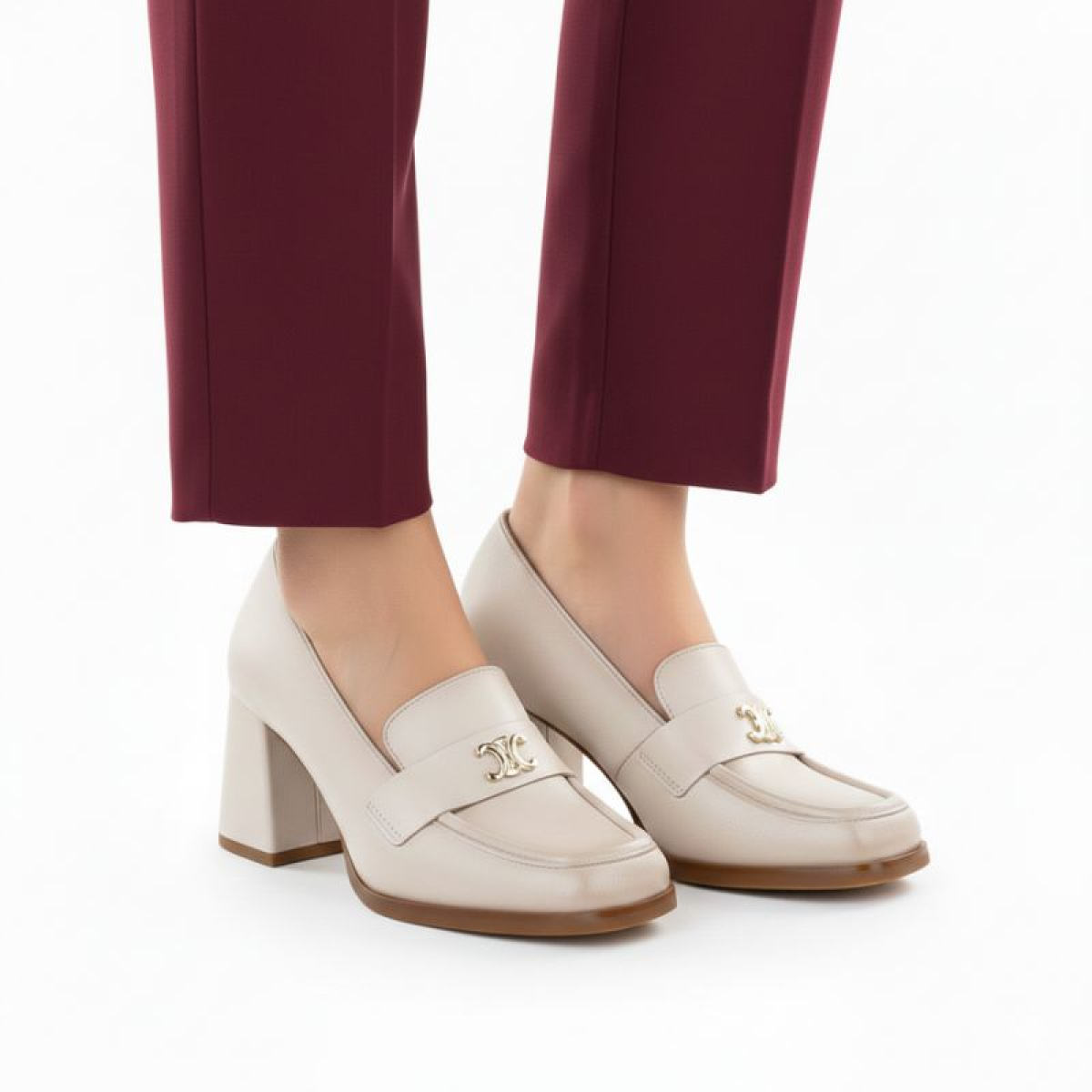 Women's beige heeled moccasins Potocki SZ12783