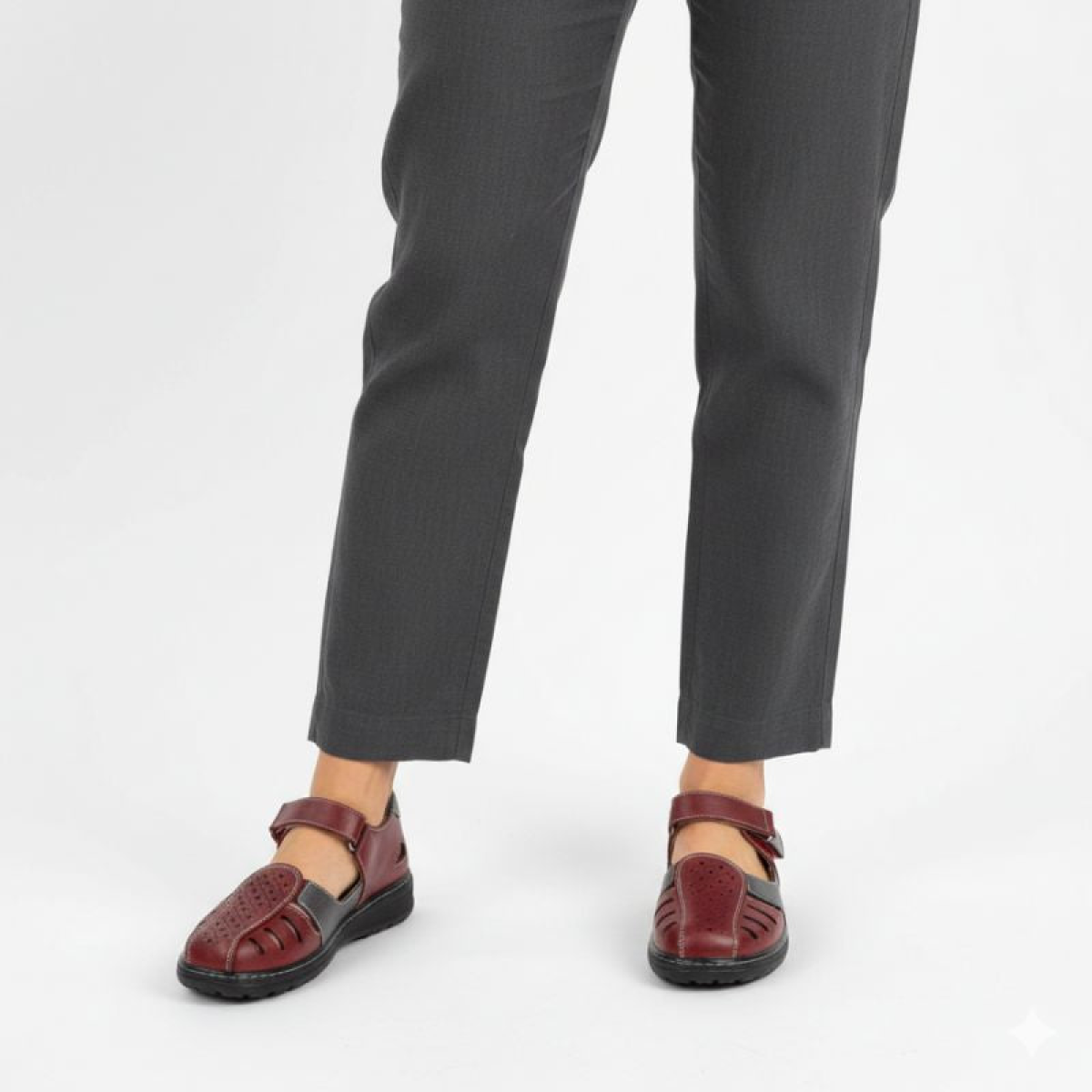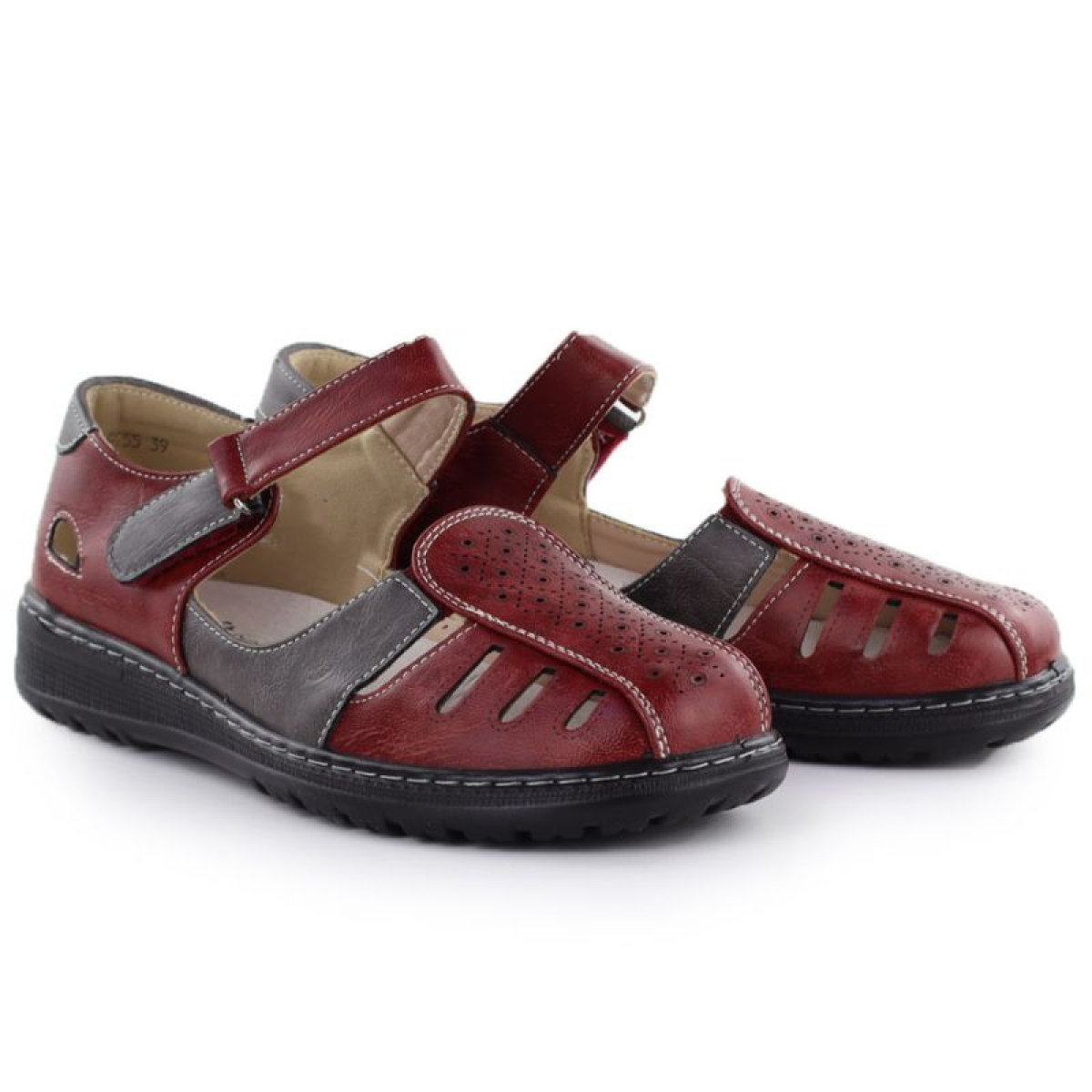 Women's comfortable burgundy openwork Velcro shoes Unisoft 9955