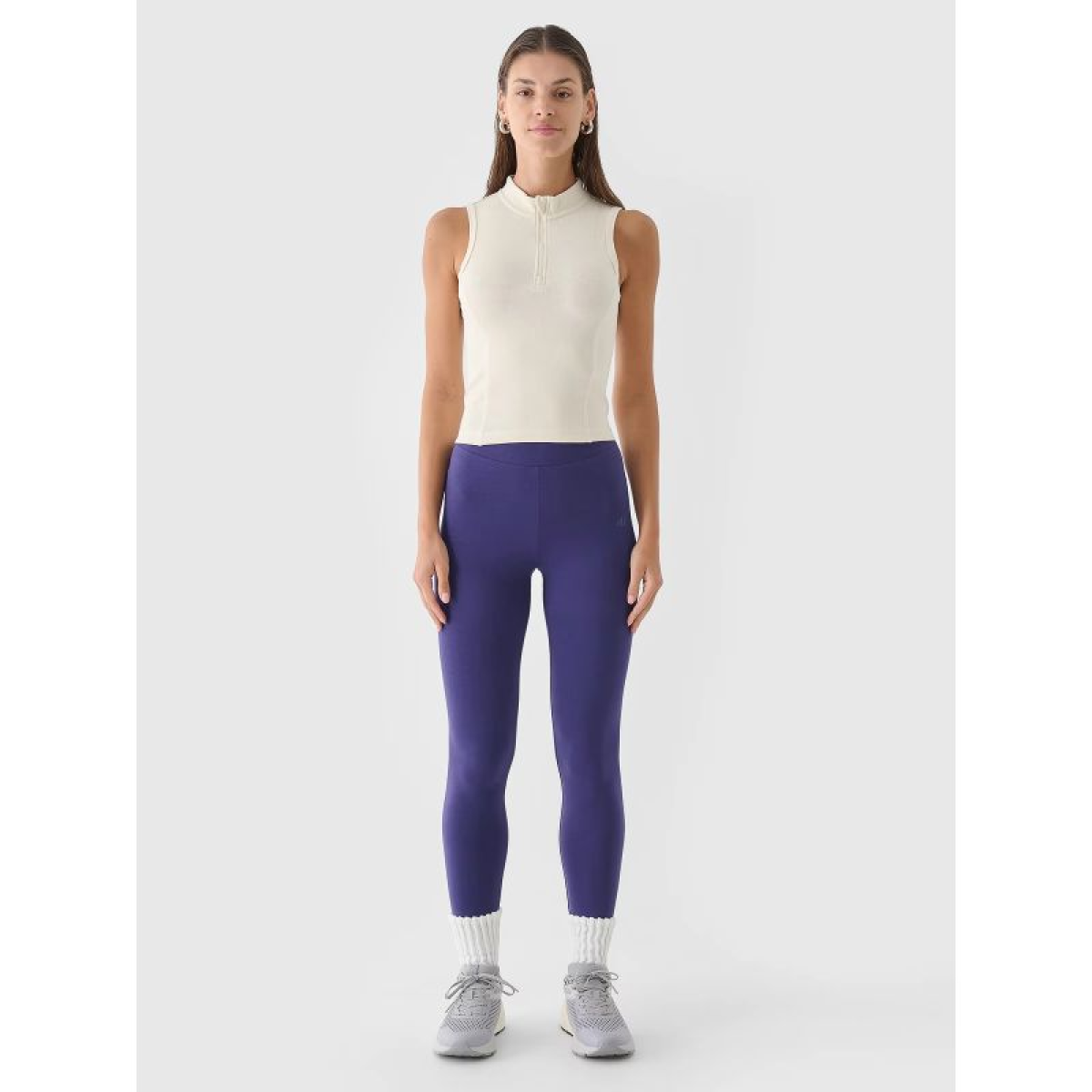Women's cotton leggings are perfect for both casual and everyday sporty outfits. These women's casual leggings feature a slim fit that hugs the body. The single jersey weave with a smooth, one-sided surface makes them flexible and comfortable to wear. They feature a high waist that stays in place and provides enhanced coverage, and full-length legs that fall below the ankle. These women's 4F leggings are made of 95% cotton , making the material soft, durable, and pleasant to the touch. Thanks to the addition of 5% elastane, they are stretchy and fit comfortably. No pockets. The elastic waistband is non-adjustable.