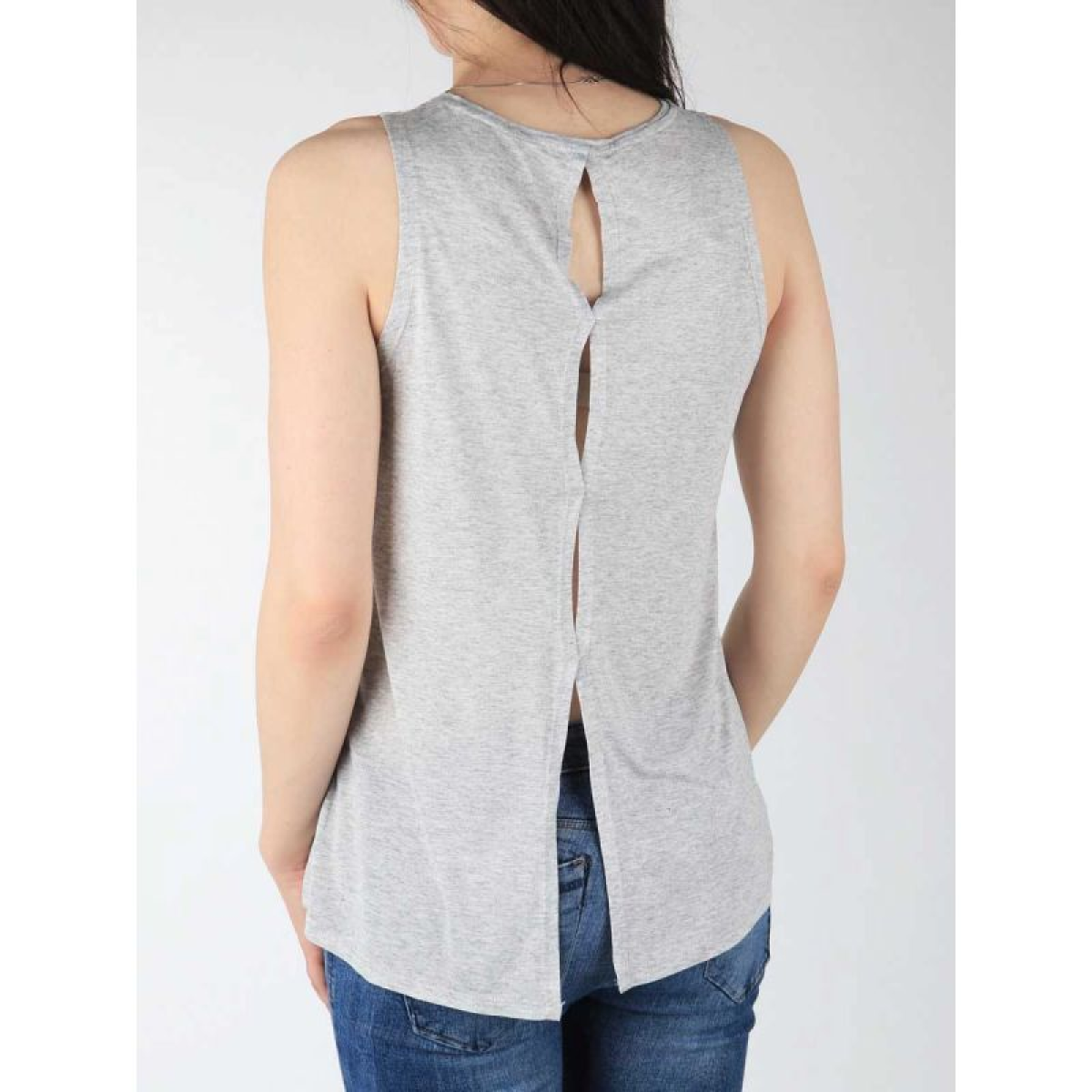 Women's top from the Lee collection. It features a loose fit and a round neckline. It's made of smooth, lightweight, and stretchy fabric. The back is longer than the front.
