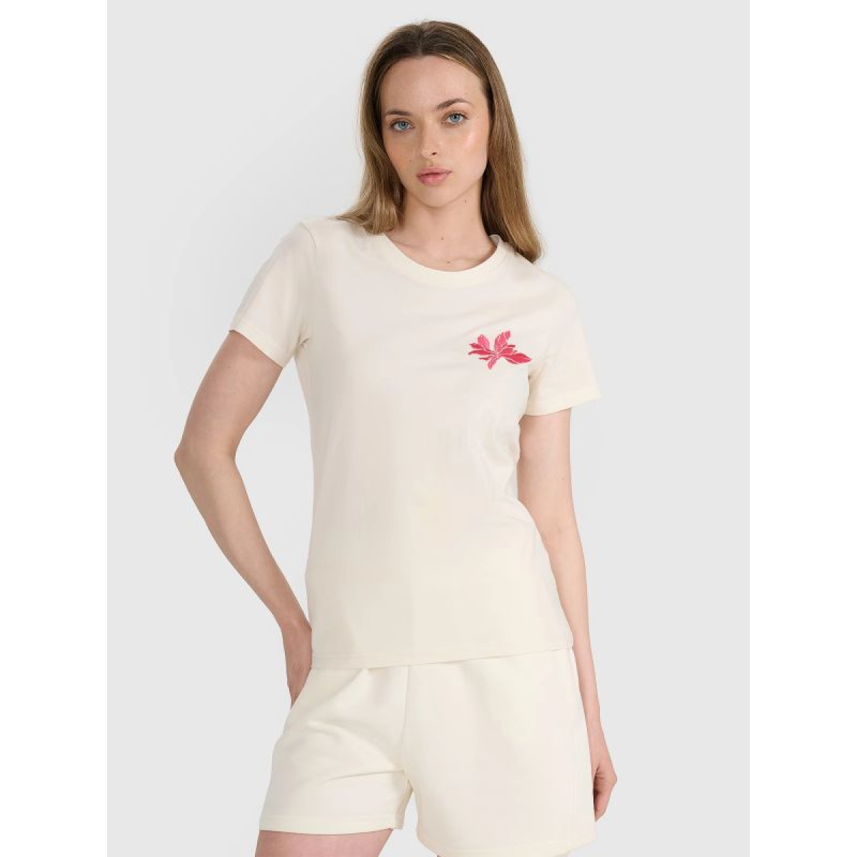 4F women's T-shirt with a botanical motif - comfort and subtle style for everyday wear