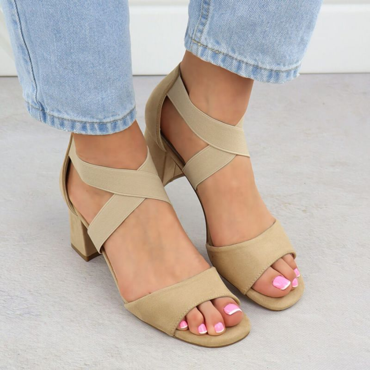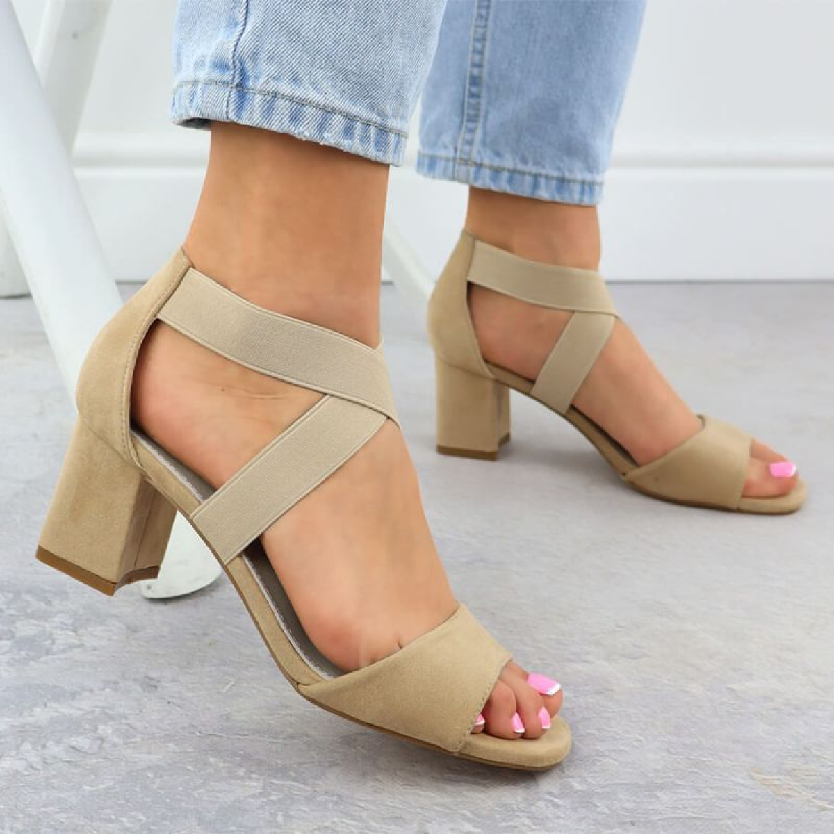 Women's slip-on sandals with a block heel, beige Filippo DS6920