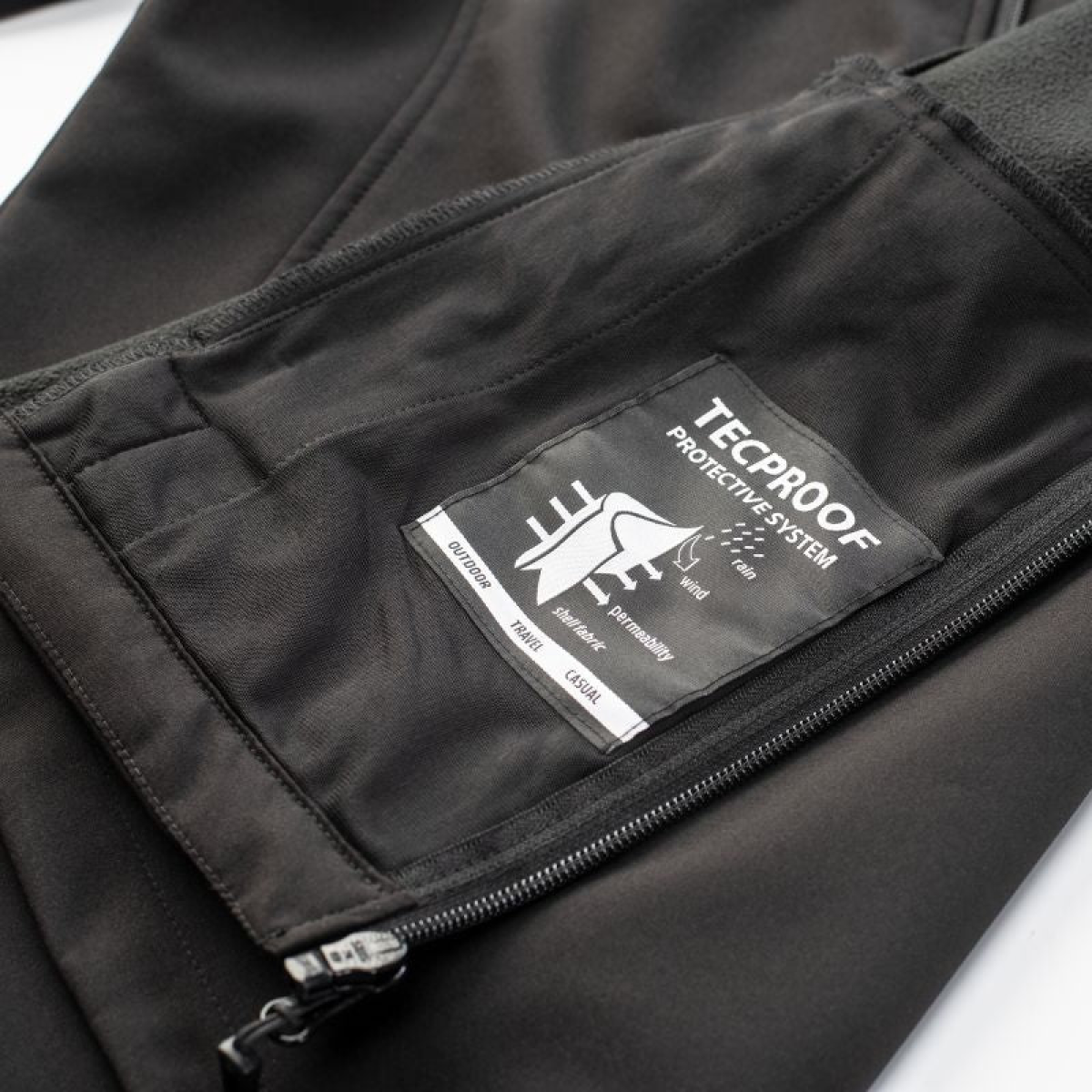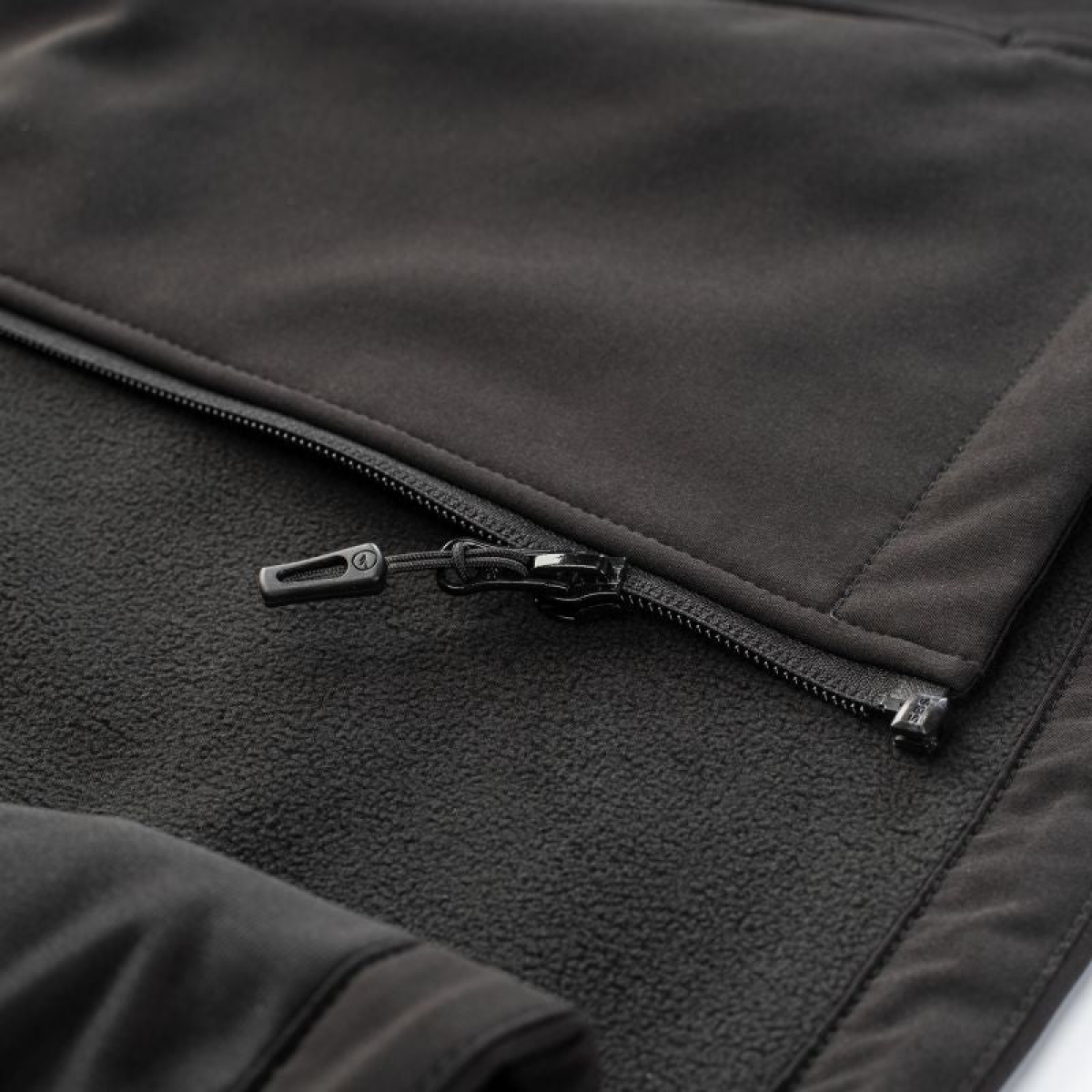 SOFTSHELL SIZE: S-XXL MATERIAL COMPOSITION: 94% POLYESTER, 6% ELASTANE SPECIFICATIONS: - WATER RESISTANCE: 10,000 mm H₂O - BREATHABILITY: 1000 g/m²/24h - WINDPROOF - 3-LAYER LAMINATION - SBS ZIPPER - ELASTIC 4-WAY STRETCH FIBERS - ADJUSTABLE HOOD - REFLECTIVE ELEMENTS - FLEECE LINED
