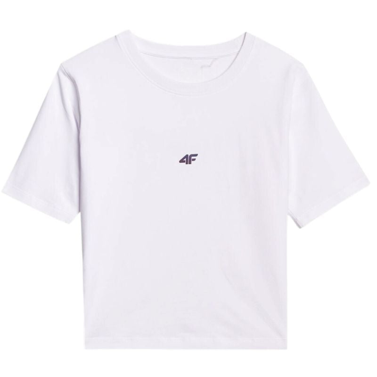 4F F2971 Women's T-Shirt White 4FWAW25TTSHF2971 10S 4F Women's T-Shirt is perfect for everyday wear. Shortened cropped style. Technical data: Main material: 95% cotton, 5% elastane Slim cut - emphasizes the figure, providing a fitted look 180 gsm weight - ensures lightness and comfort for everyday wear Slim cut - emphasizes the figure, providing a fitted look Cotton dominant in the material composition - guarantees softness, durability, and pleasant contact with the skin Uniform colors - facilitates combining various styles Single jersey fabric - soft to the touch, with a smooth, pleasant surface Round neckline with slight ribbed detailing - increases comfort and durability of the finish Small reflective 4F logo on the front - a subtle detail increasing visibility
