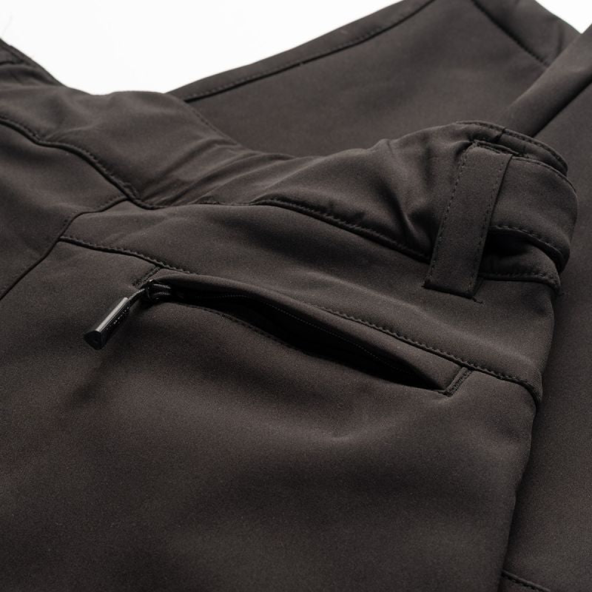 SOFTSHELL TROUSERS MATERIAL COMPOSITION: 94% POLYESTER, 6% ELASTANE, 300 g/m2 SPECIFICATIONS: - WATER RESISTANCE: 10,000 mm H2O - BREATHABILITY: 1,000 g/H2O/m2 - WINDPROOF - WATERPROOF - 3-LAYER LAMINATION - DWR COATING - REFLECTIVE ELEMENTS