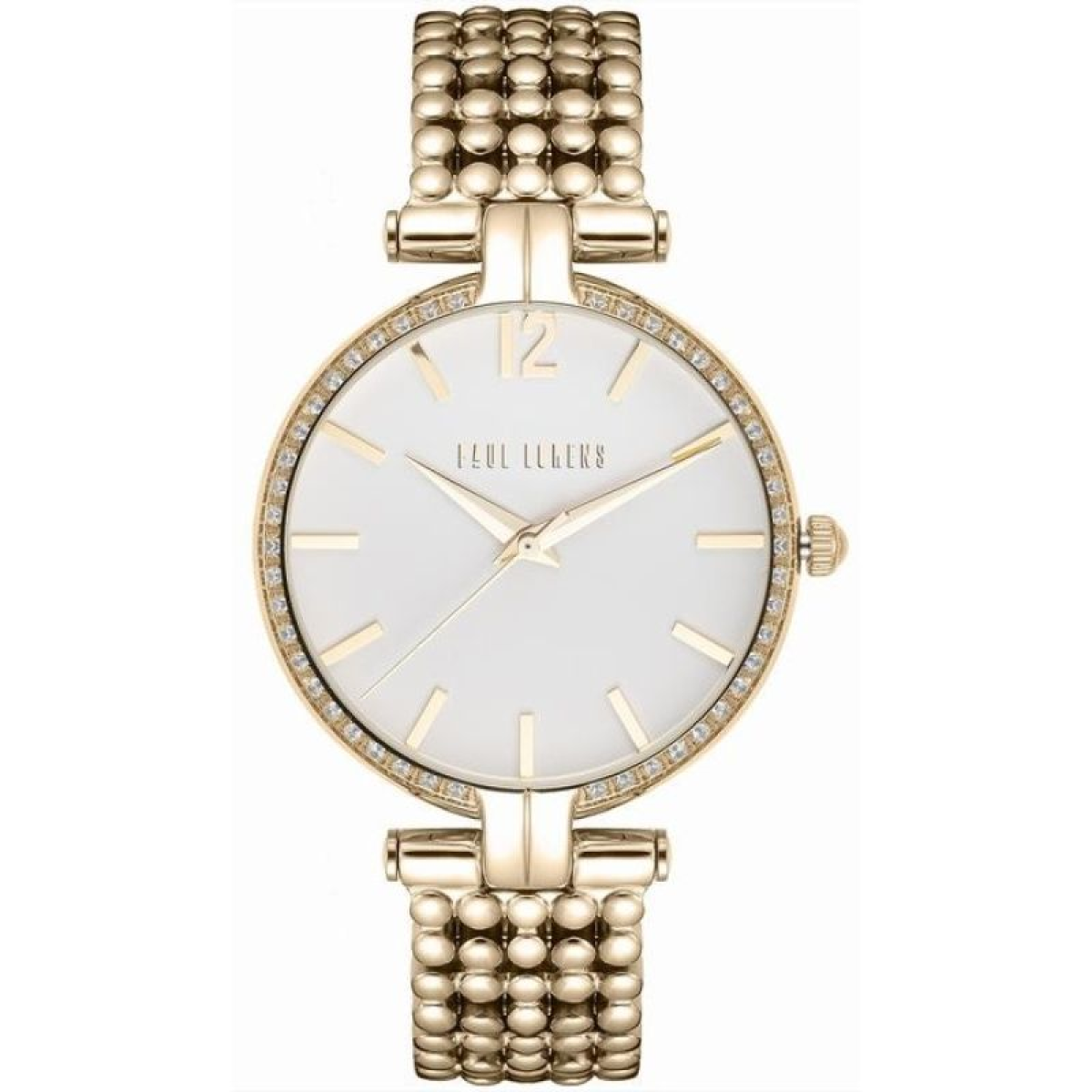 Its smooth, subtly shimmering surface harmoniously wraps the wrist, ensuring all-day comfort. Its precise contouring perfectly fits a woman's hand, subtly accentuating the wrist's slenderness and adding a touch of elegance to any outfit. Stainless steel combines both durability and lightness, making the watch exceptionally comfortable to wear. The bracelet's design perfectly balances luxury with everyday simplicity, making this watch ideal for both evening wear and everyday wear. The Paul Lorens logo on the bracelet clasp completes the look.