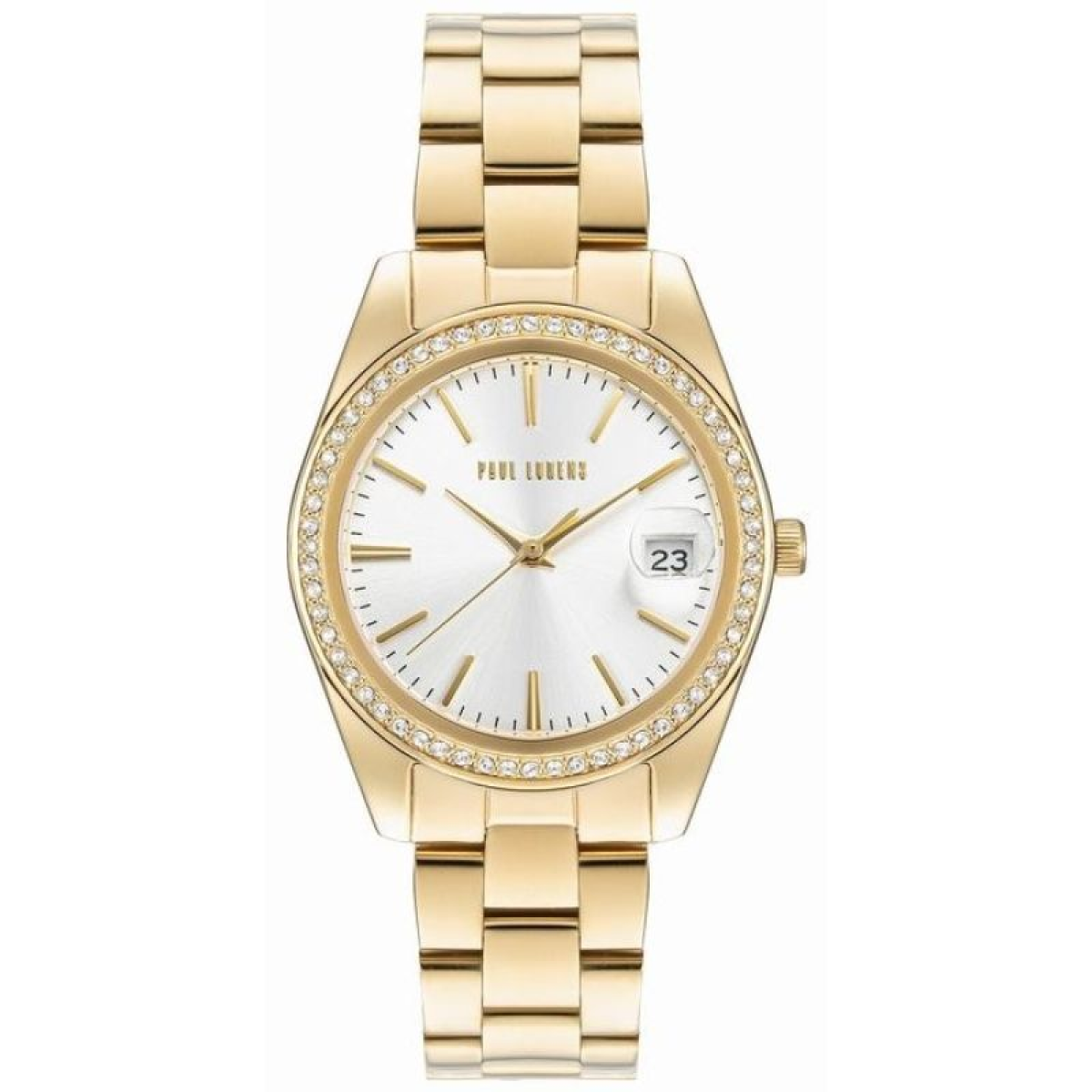 Its smooth, subtly shimmering surface harmoniously wraps the wrist, ensuring all-day comfort. Its precise contouring perfectly fits a woman's hand, subtly accentuating the wrist's slenderness and adding a touch of elegance to any outfit. Stainless steel combines both durability and lightness, making the watch exceptionally comfortable to wear. The bracelet's design perfectly balances luxury with everyday simplicity, making this watch ideal for both evening wear and everyday wear. The Paul Lorens logo on the bracelet clasp completes the look.