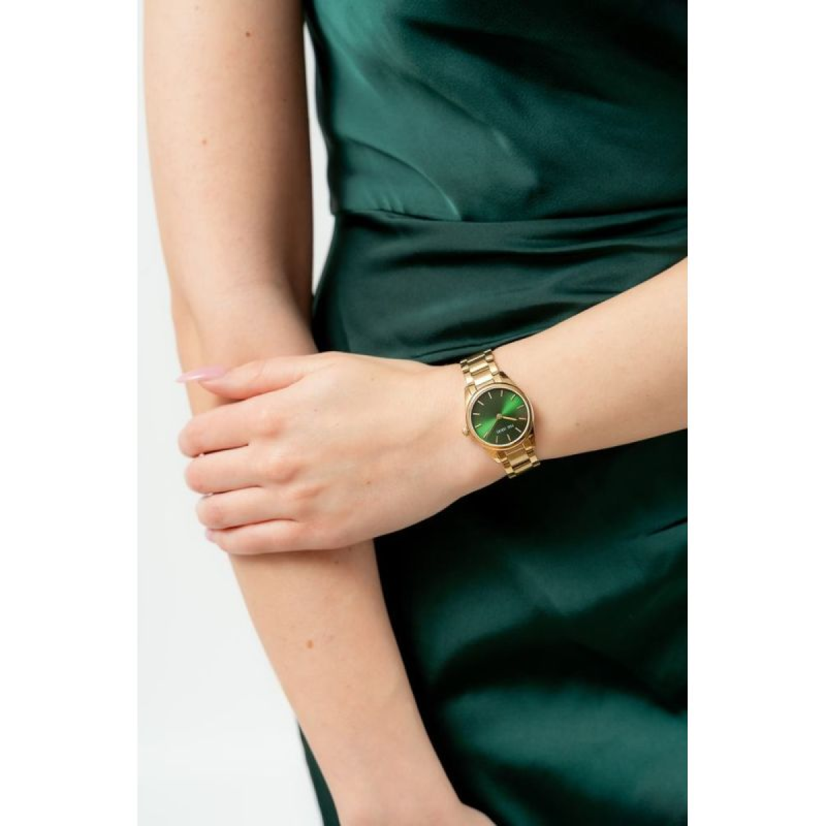- Dial : emerald green with a delicate, radiant satin sheen effect