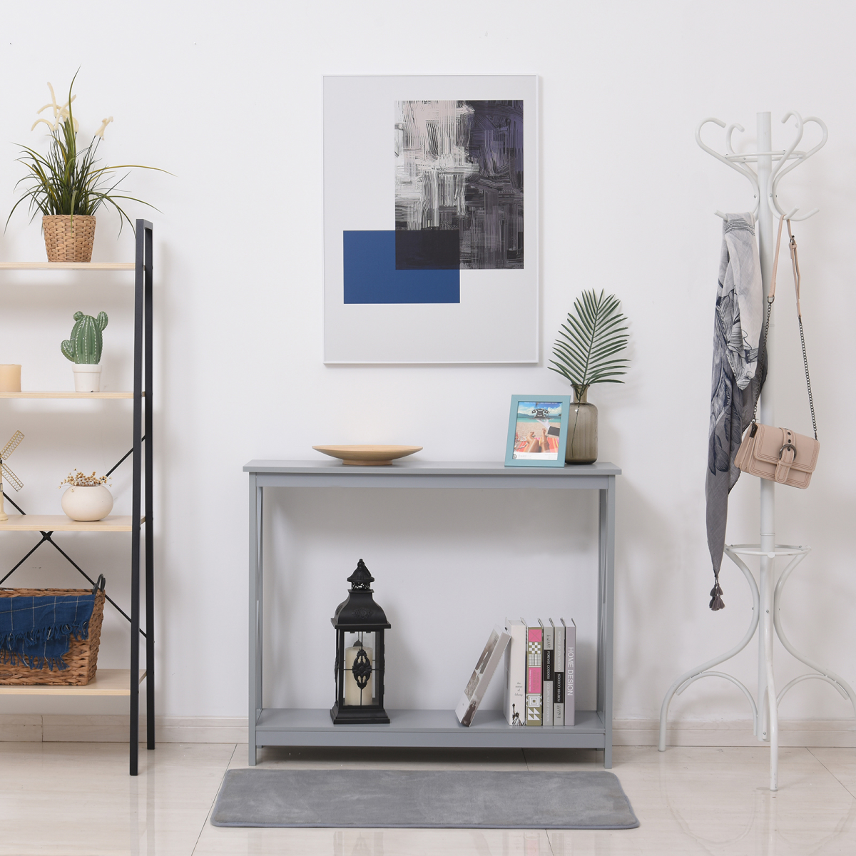 The console table can bear up to 20kg/44lbs and the bottom shelf can hold up to 5kg/11lbs. The X structures on both sides adds fashion sense and extra stability.VERSATILE: The design of this console table meets various needs of home decoration. Works great as a console table, entry way table, hall table, display table, plant stand end table in bedroom, entryway, study, living room, dining room, office, and so on.PRACTICAL: The console table is suitable for put something to enhance decorative effect, you can put vase, table lamp, books, photo frame or anything you want like. The lower storage shelf provides additional space for magazines or other objects, which makes your space neat and clean.CONCISE DESIGN: This console table is of a classic and elegant design. Pure colour, symmetrical patterns and straight lines are all elements that will be the perfect complement to your home decor.DIMENSION: Overall dimension: 100W x 30D x 80.5H cm, Weight capacity: 20kg(Total), 5kg(Shelf). Assembly required.