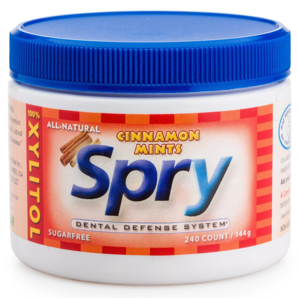 100% Xylitol All-Natural Dental Defense System May Reduce the Risk of Tooth Decay Non-GMO Gluten-Free Sweetened Only With Xylitol Halal Kosher Spry Dental Defense System Spry—Improving Oral Health Frequent eating of foods high in sugars and starches can promote tooth decay. Clinical studies have shown that the use of xylitol on a daily basis, spread throughout the day, may reduce the risk of tooth decay. Every batch tested in USA to ensure the highest quality.