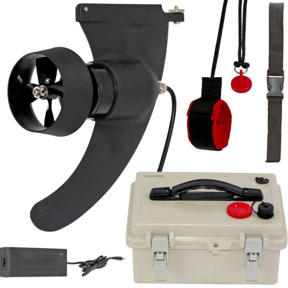 - Included: motor with fin, 10AH battery, charger, fastening strap, ankle leash with automatic stop, remote control.