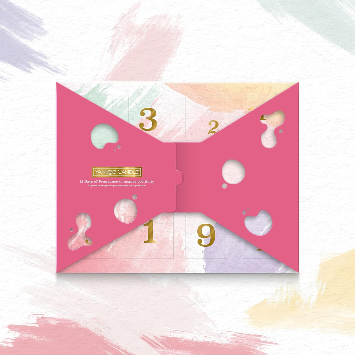 • Promote positivity every day with this Yankee Candle gift set, featuring a scented Filled Votive and inspirational quote behind each of its 12 doors, as well as a coral votive holder