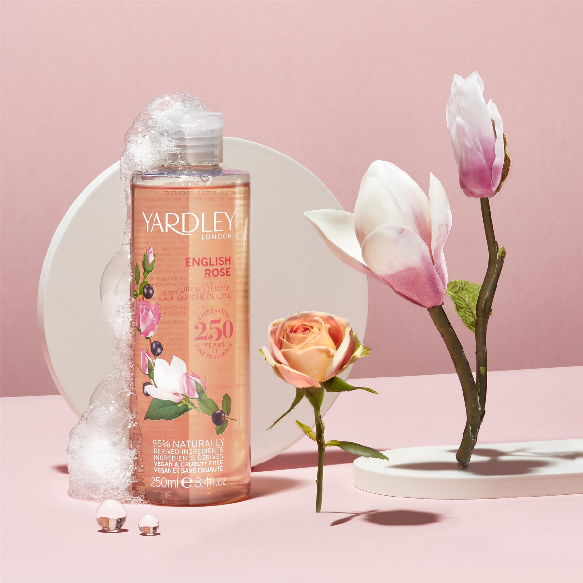 This creamy, moisturising shower gel Body Wash helps maintain the skins natural moisture levels. Infused with Yardley London’s English Rose fragrance, combining refreshing, light rose with notes of rose bud, magnolia and cassis. With its nourishing blend of revitalising rose water, moisturising sustainable shea butter, evening primrose oil and sustainable monoi oil, rich in essential fatty acids and vitamin E, it cleanses and hydrates the skin leaving it feeling soft, smooth and delicately fragranced.
