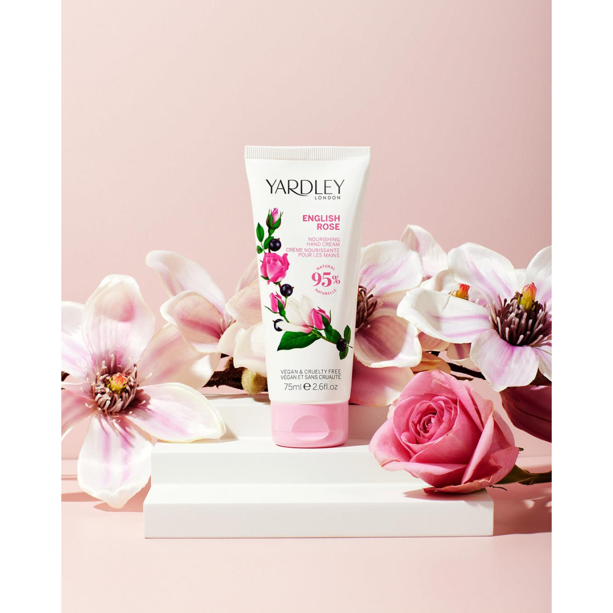 A luxurious Nourishing Hand Cream with revitalising rose water, hydrating sustainable shea butter, sunflower oil, monoi oil and evening primrose oil, rich in essential fatty acids and antioxidant vitamin E to help fight against ageing. It absorbs quickly into the skin, leaving hands feeling soft, smooth and delicately fragranced, whilst conditioning and strengthening the nails. It has a refreshing, light fresh floral with sparkling citrus and rose top notes blended with tea accord. Combining a complex floral heart of rose bud, magnolia, violet and cassis with warm woody notes – it’s enhanced with patchouli and musks, adding velvety tones to the base.