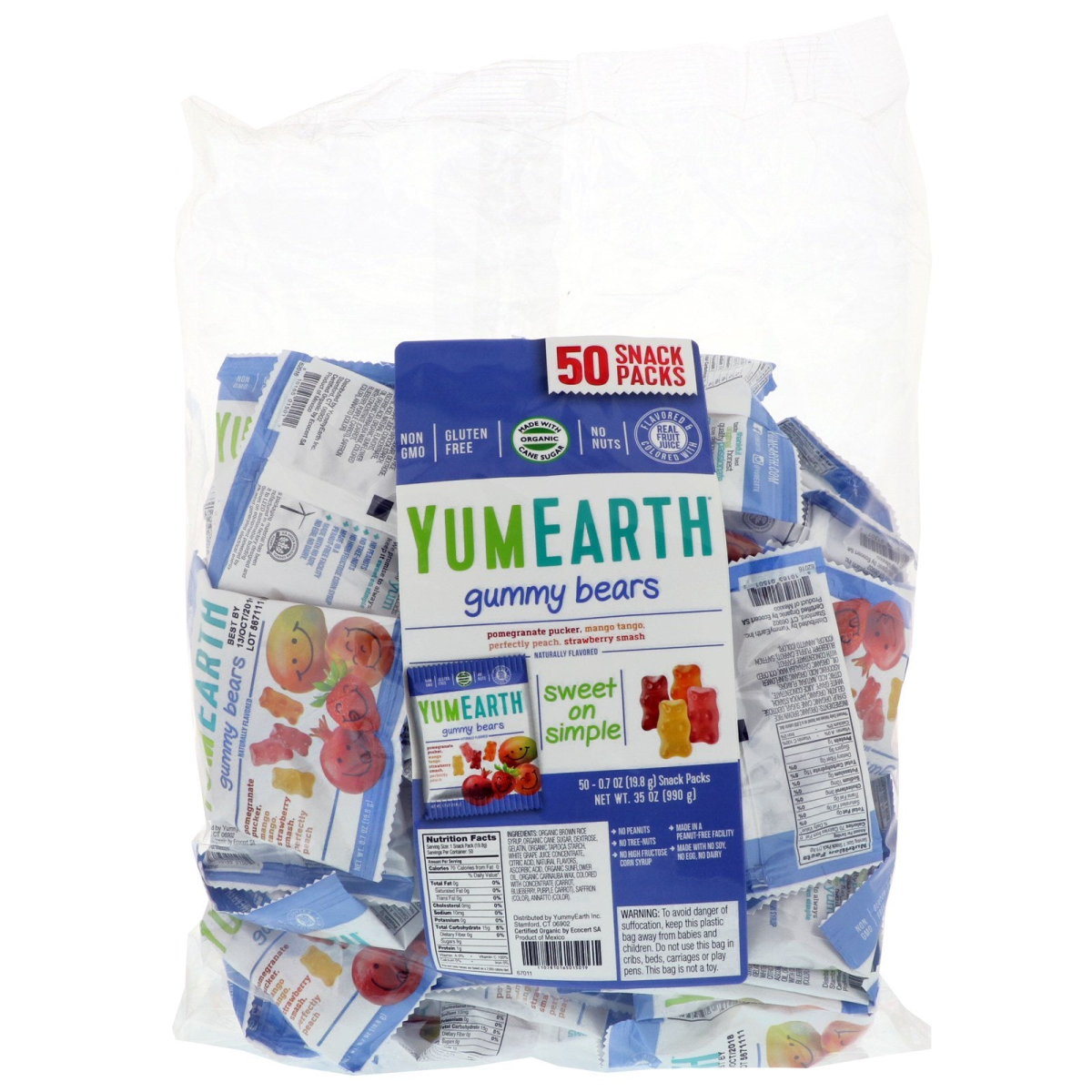 YumEarth, Gummy Bears, Assorted Flavors, 50 Snack Packs, 0.7 oz (19.8 g) Each