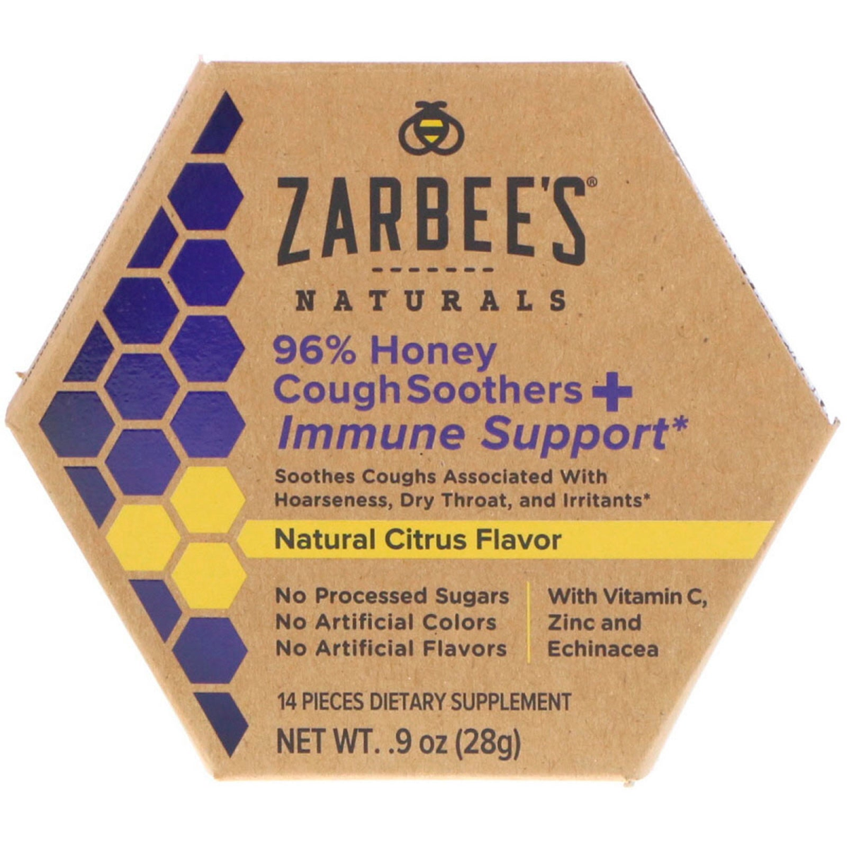 Zarbee's 96% Honey Cough Soothers + Immune Support Natural Citrus Flavor 14 Pieces