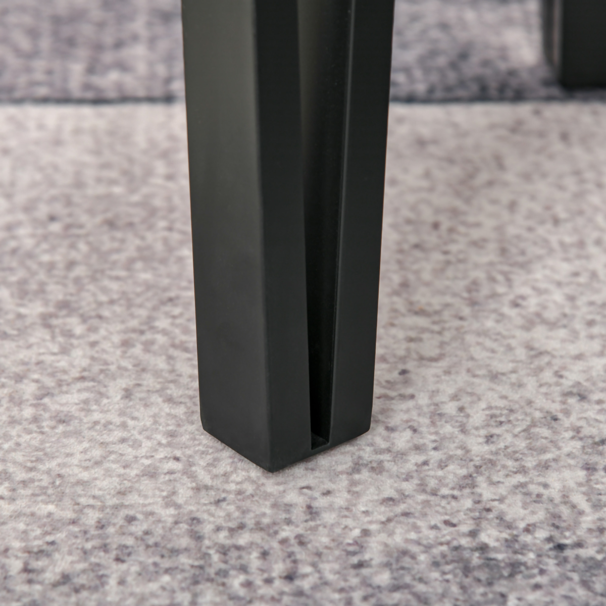 - V-shaped doubled peg legs on each corner, made from metal for strength, with foot pads to protect your floor