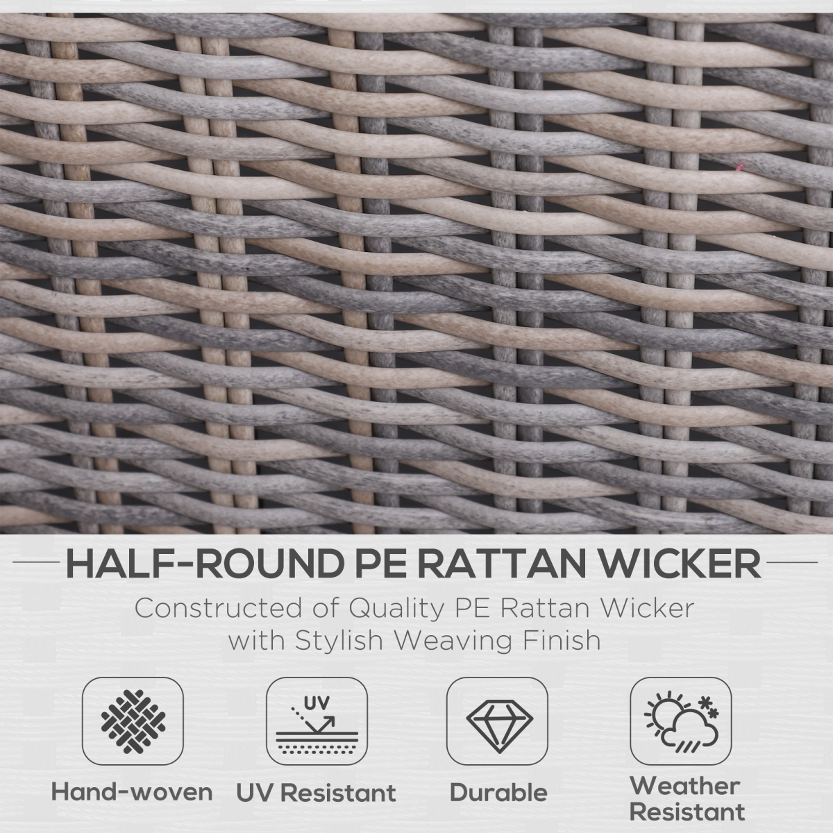 Look forward to those lazy afternoons ahead with this outdoor seating set from Outsunny. Totalling five pieces, the set includes two corner chairs, two footstools and a tall table, with solid aluminium forming the base frame for a robust structure, wrapped with PE wicker for a beautiful rattan look which is resistant to mild weathering and damage. Extra deep and wide in design to provide plenty of resting room, thick cushions are placed on the chair seats, the chair backs and the footstools for comfort, with removable and washable covers so you can keep them clean. Matching in height with the chairs, the round table is the perfect spot for keeping everything you need near, with beautiful glass surface placed on top. A set to relax under the sun for seasons to come.