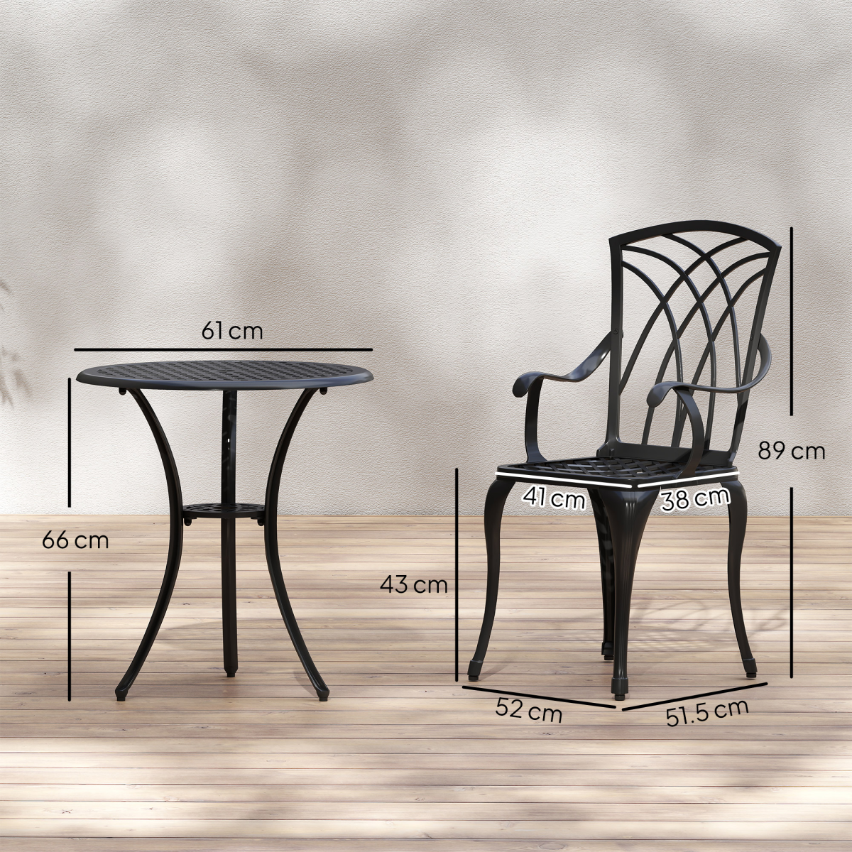 Cast Aluminium 2-Seater Outdoor Garden Table & Chair Set Brown