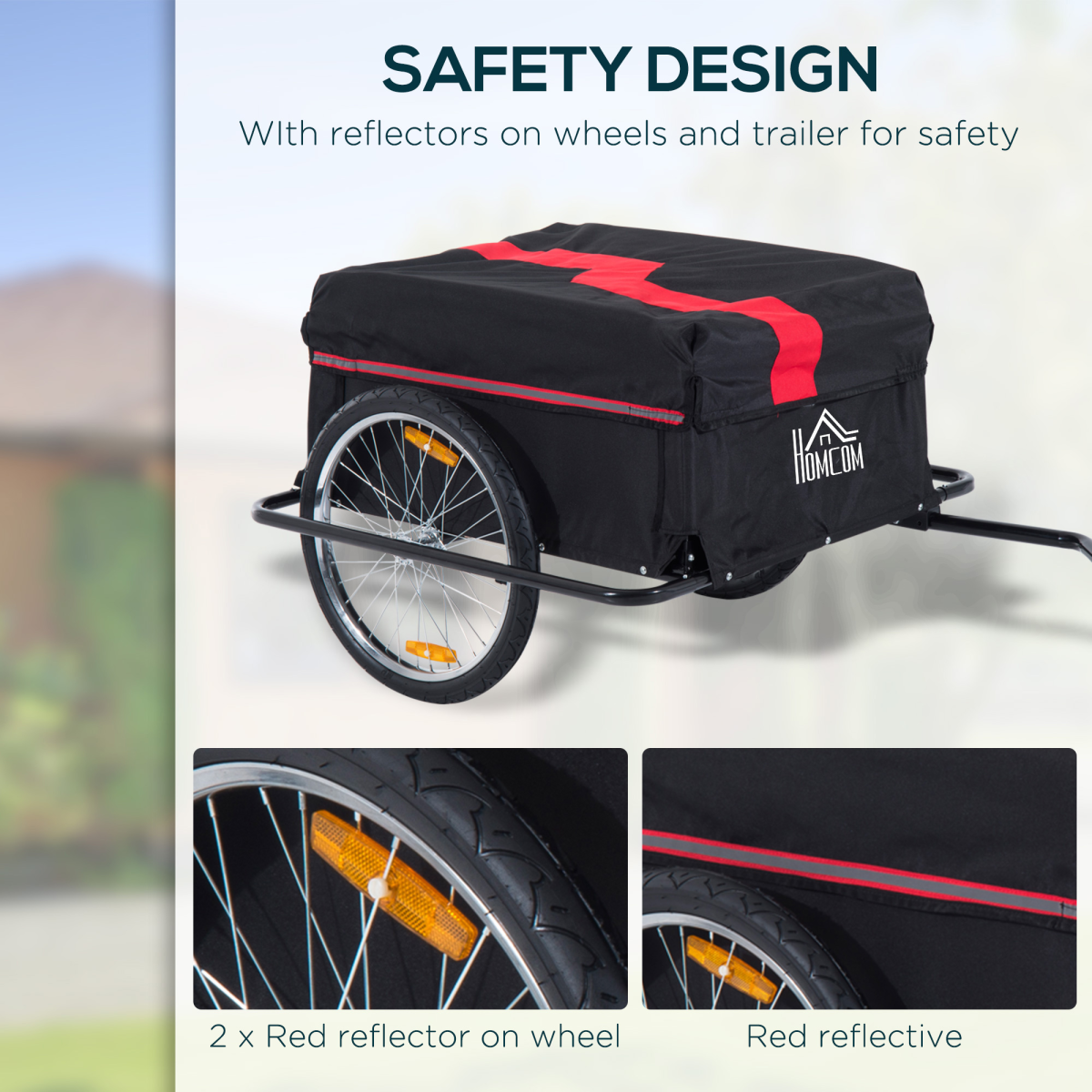 STEEL BASE: A solid platform which keeps this push bike trailer steady and balanced when in motion. Holds the carrier securely so nothing falls off when properly packed.SPACIOUS BAG: Offers plenty of safe holding room for your shopping essentials. Made from oxford cloth, this cycle trailer is tough and durable, with a top cover to protect from light rain and wind.TWO WHEELS: This allows smooth movement on the ground when you're on the go. Reflectors on both sides of this bike trailer for visibility and safety. Releases from the frame for easy storage.HITCH CONNECTION: Attaches to your bike easily and keeps in place securely. DIMENSIONS: 60H x 140L x 88Wcm. Inside storage: 38H x 84.5L x 61Wcm.MAXIMUM LOAD 40KG. EASY TO ASSEMBLE.