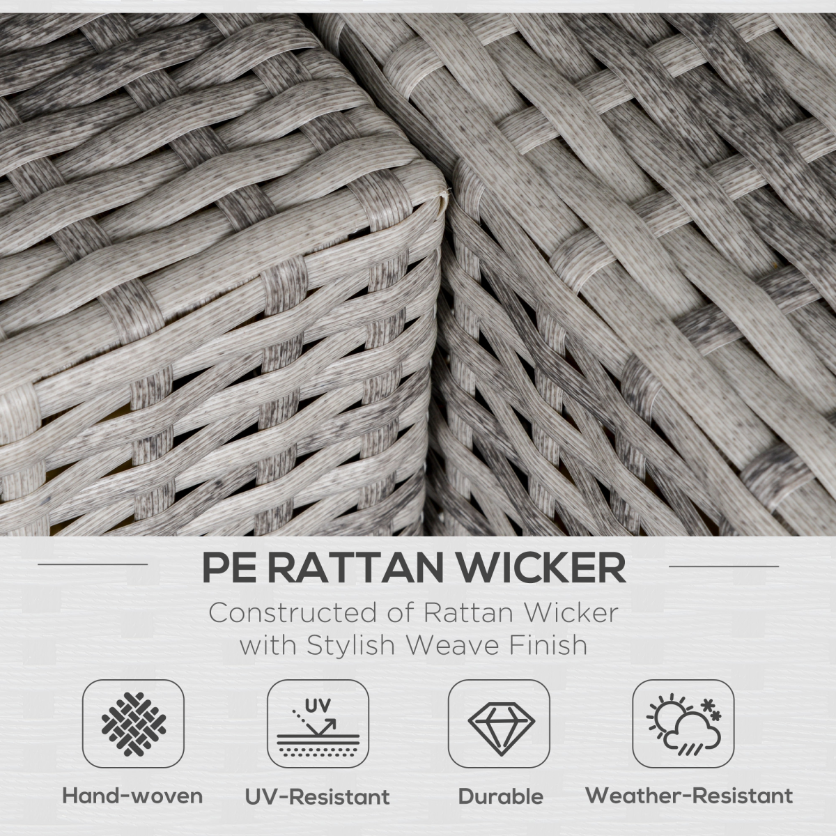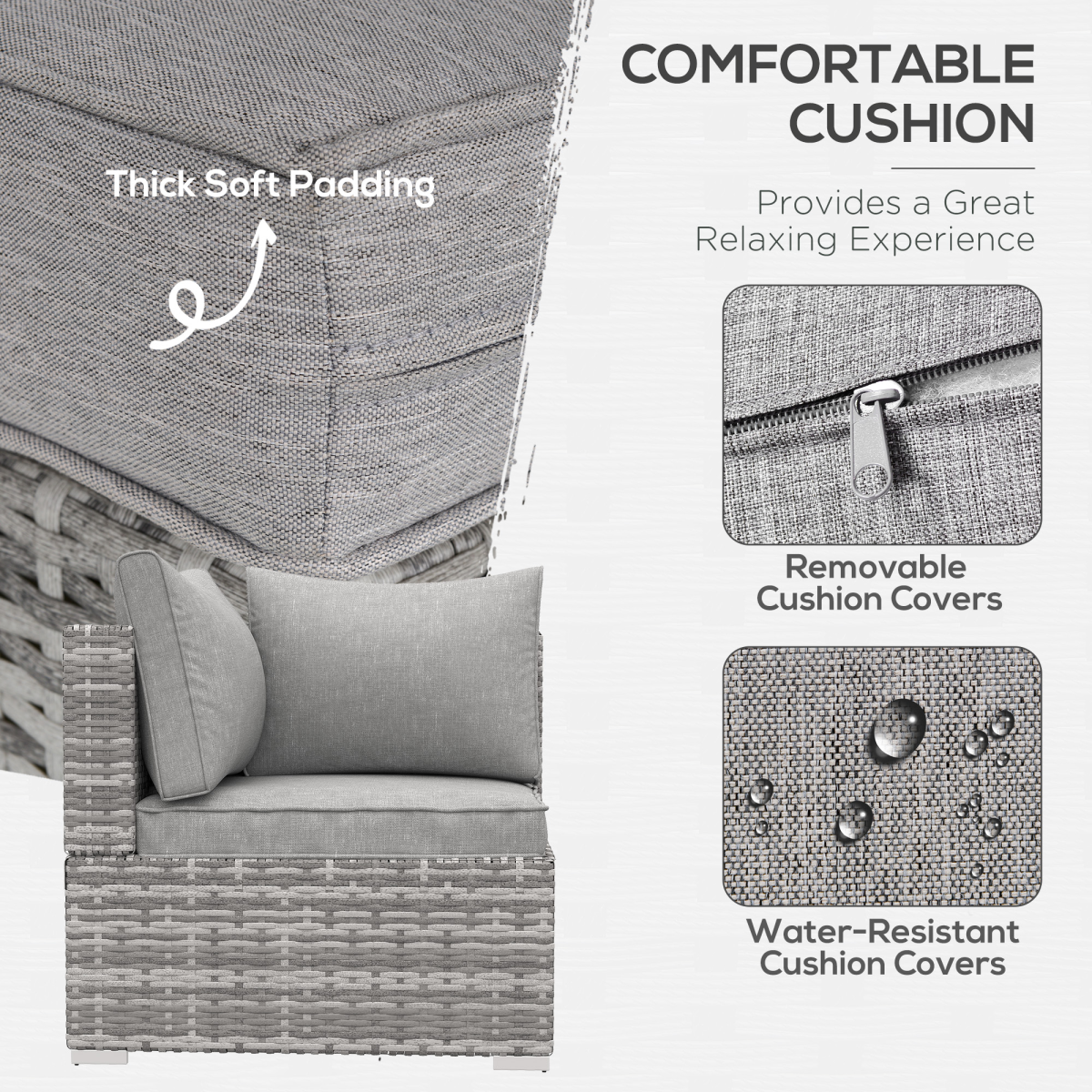 This modern rattan wicker coner sofa is design from Outsunny. It's made from rust-resistant galvanized metal frame with power coated, all hand weaving PE rattan wicker which is strong enough to withstand all weather conditions. With comfortable thick padded back-support cushions, cushion cover is removable and washable. Perfectly fit for different occasions, ideal suit for garden, balcony, patio, poolside, garden in your home.