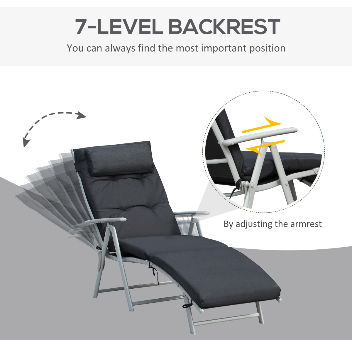 - Steel Frame Outdoor Garden Padded Sun Lounger w/ Pillow, Black