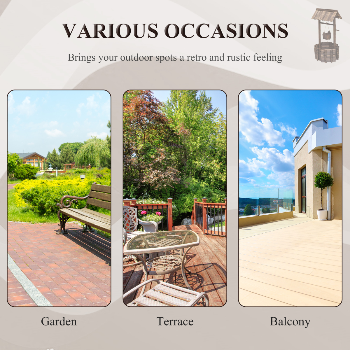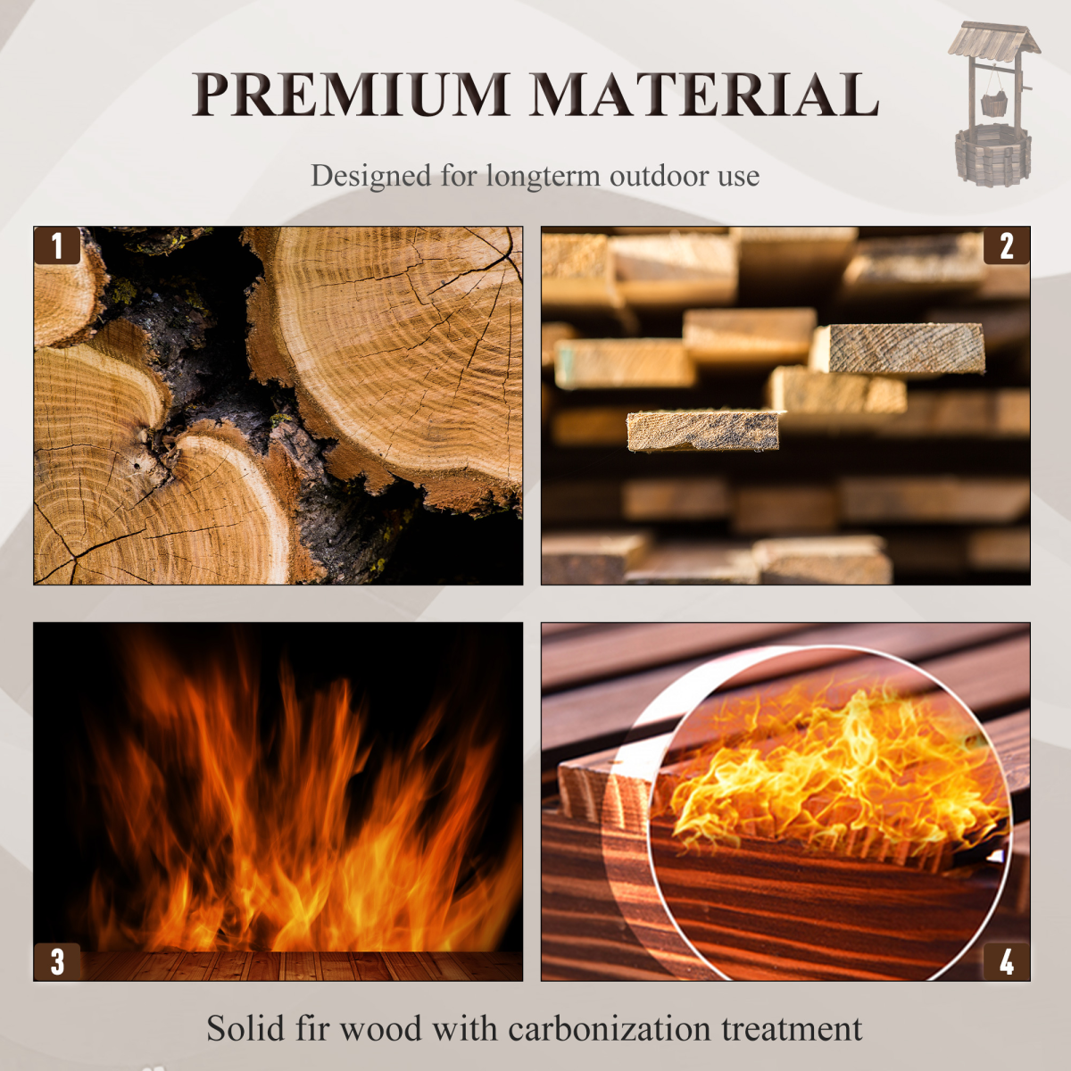- This lovely water well planter will add an elegant and stylish look to your lawn or garden. Features burnt-like wood finish for a rustic appearance, this well is constructed with fir wood that will keep the planter durable and long-lasting.