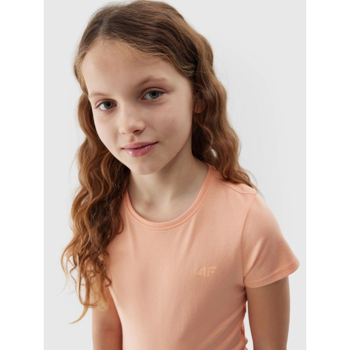 This girls' plain T-shirt is a versatile addition to both casual and sporty outfits, making it the perfect choice for everyday wear. It features a slim fit that follows the contours of the body. Made from single jersey knit, the T-shirt offers a soft and cozy feel thanks to its smooth, one-sided surface. Made of 100% cotton, this girls' short-sleeved T-shirt features a seamless, velvety texture that's both durable and sensual. A crew neckline with delicate ribbed trim completes the design.