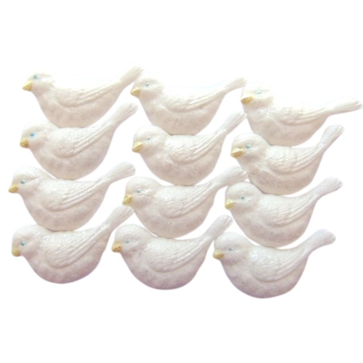 12 Glittered White Birds Edible Cupcake Cake Decorations