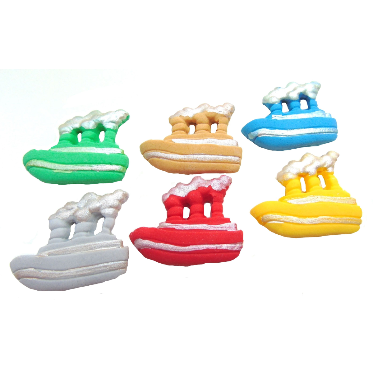 Delight the sailor in your family with our 12 handmade edible coloured boat cupcake topper decorations. In bright colours and are great for parties