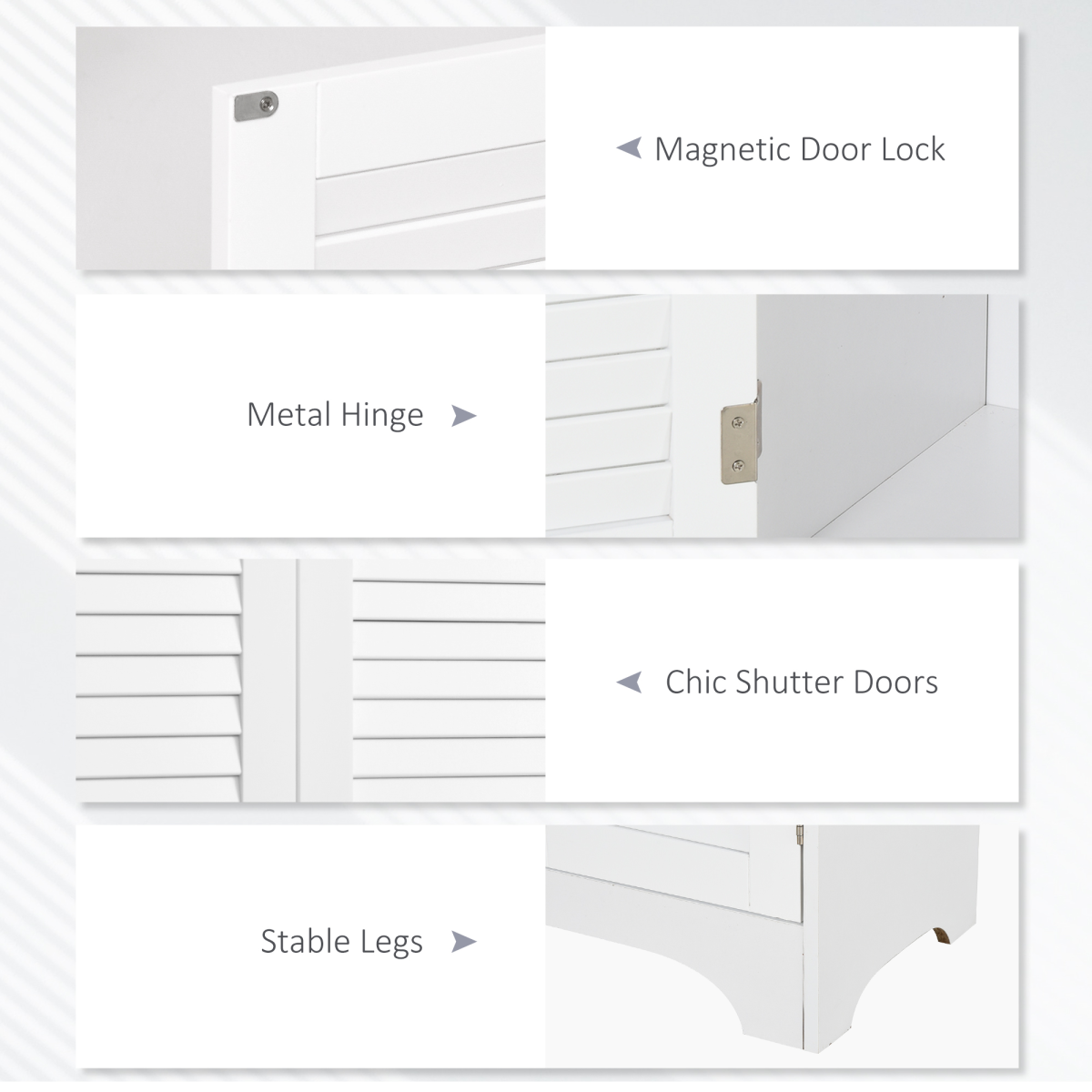 183x60cm Tall Freestanding Bathroom Cabinet Retro Shutters 3 Compartments White