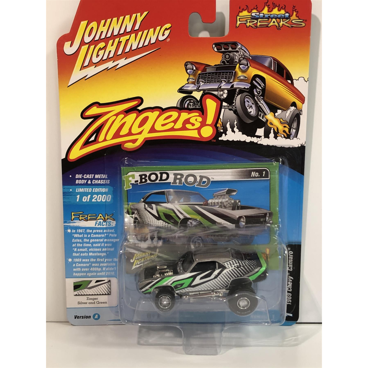 1969 Chevy Camaro Zinger Silver and Green 1:64 Johnny Lightning JLSF015B