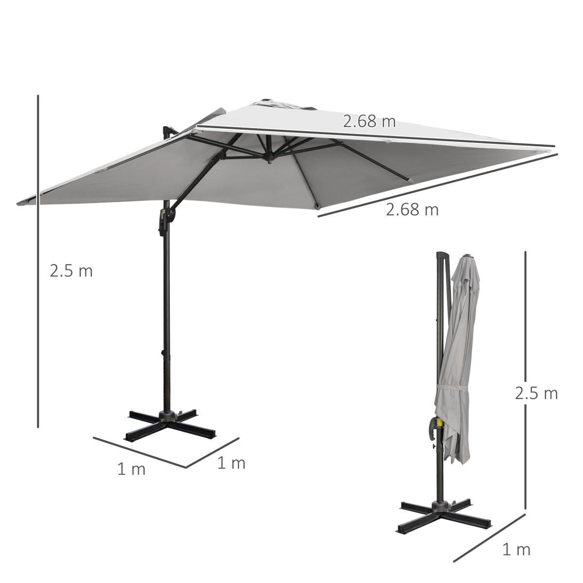 - 2.7 x 2.7 m Cantilever Parasol Garden Umbrella w/ Cross Base